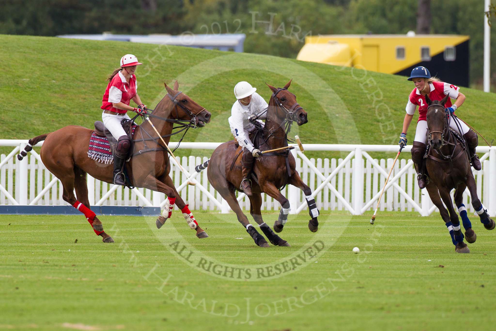 DBPC Polo in the Park 2012: Phoenix Polo Team #1, Molly Davies, Rathbones #2, Alex Boucher, and Phoenix #2, Jeanette Jones.. Dallas Burston Polo Club, Stoneythorpe Estate, Southam, Warwickshire, United Kingdom, on 16 September 2012 at 12:32, image #122
