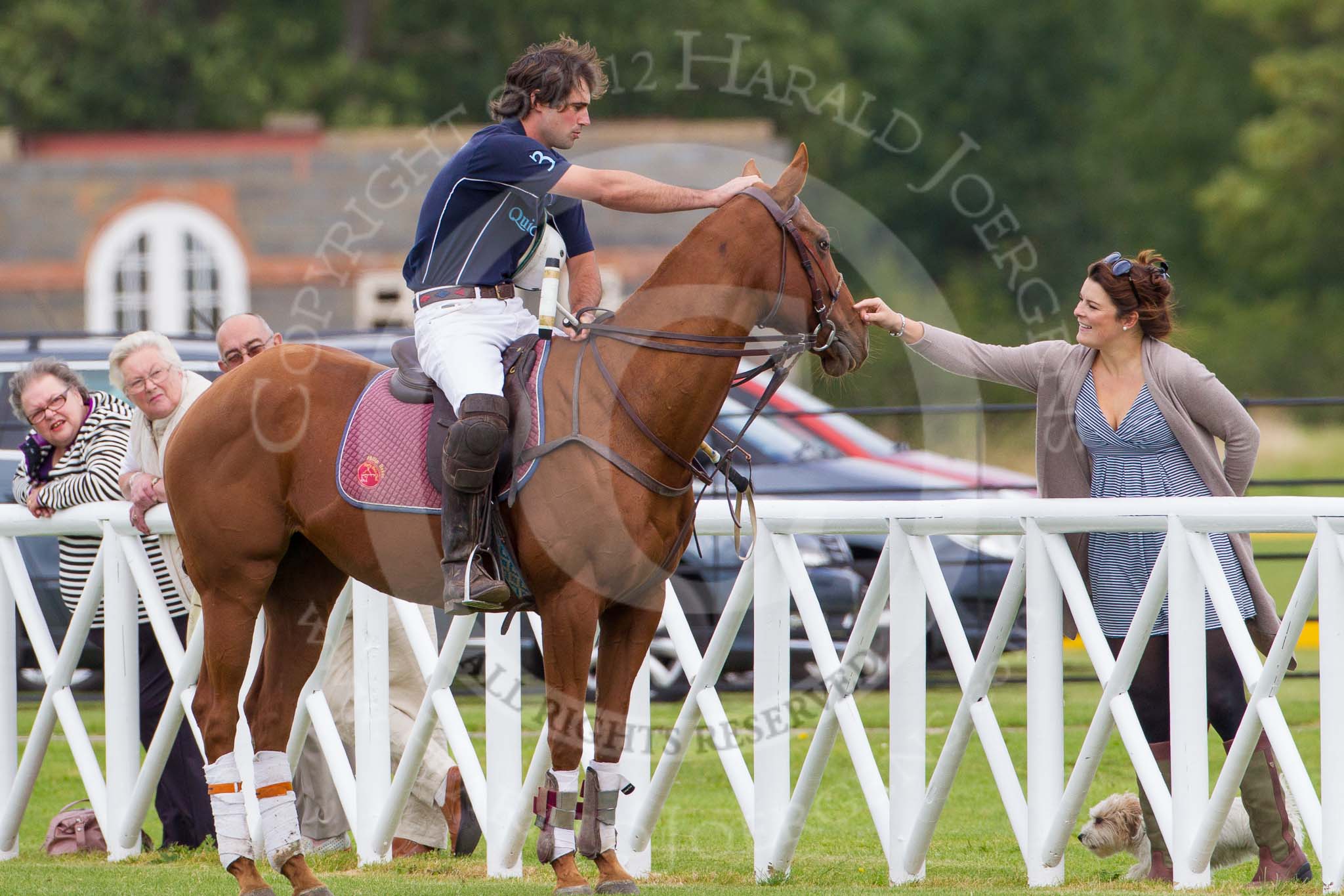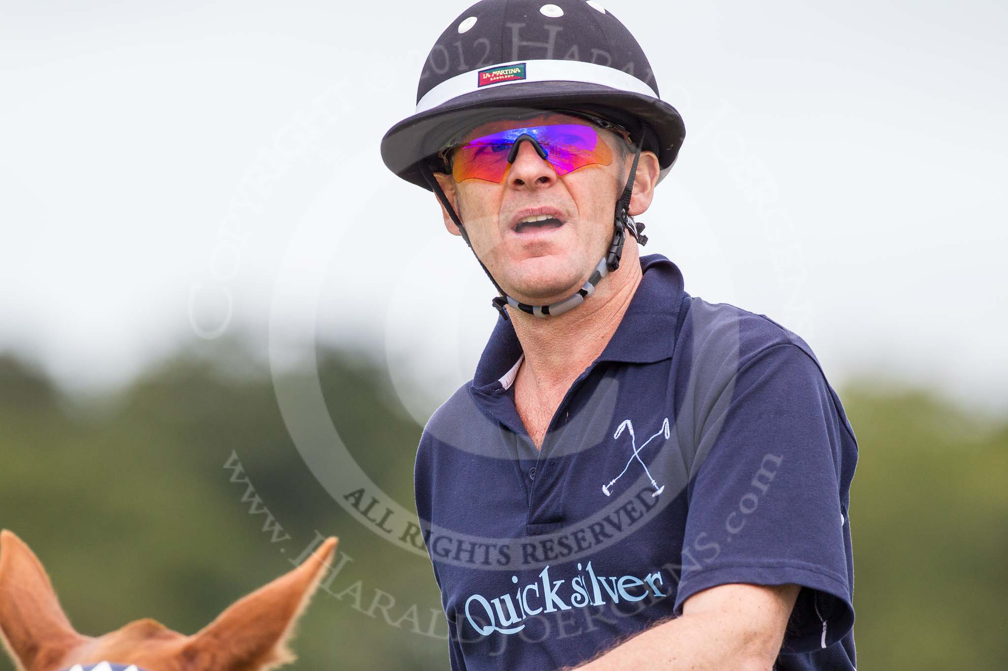 DBPC Polo in the Park 2012: Quicksilver Polo Team #3, Philip Baker, before the match.. Dallas Burston Polo Club, Stoneythorpe Estate, Southam, Warwickshire, United Kingdom, on 16 September 2012 at 12:38, image #124