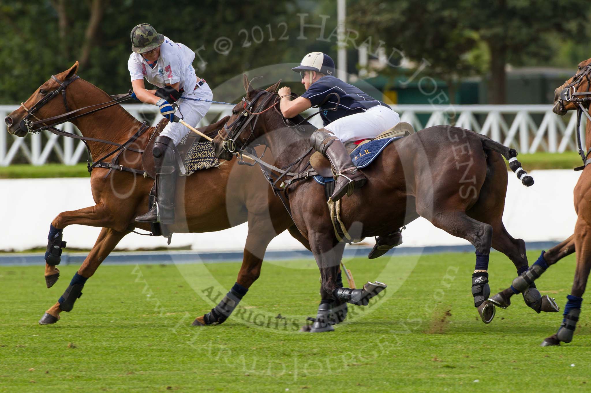DBPC Polo in the Park 2012: Quicksilver Polo Team #3, Philip Baker, and Dawson Group Polo Team #4, David Ashby.. Dallas Burston Polo Club, Stoneythorpe Estate, Southam, Warwickshire, United Kingdom, on 16 September 2012 at 12:55, image #134