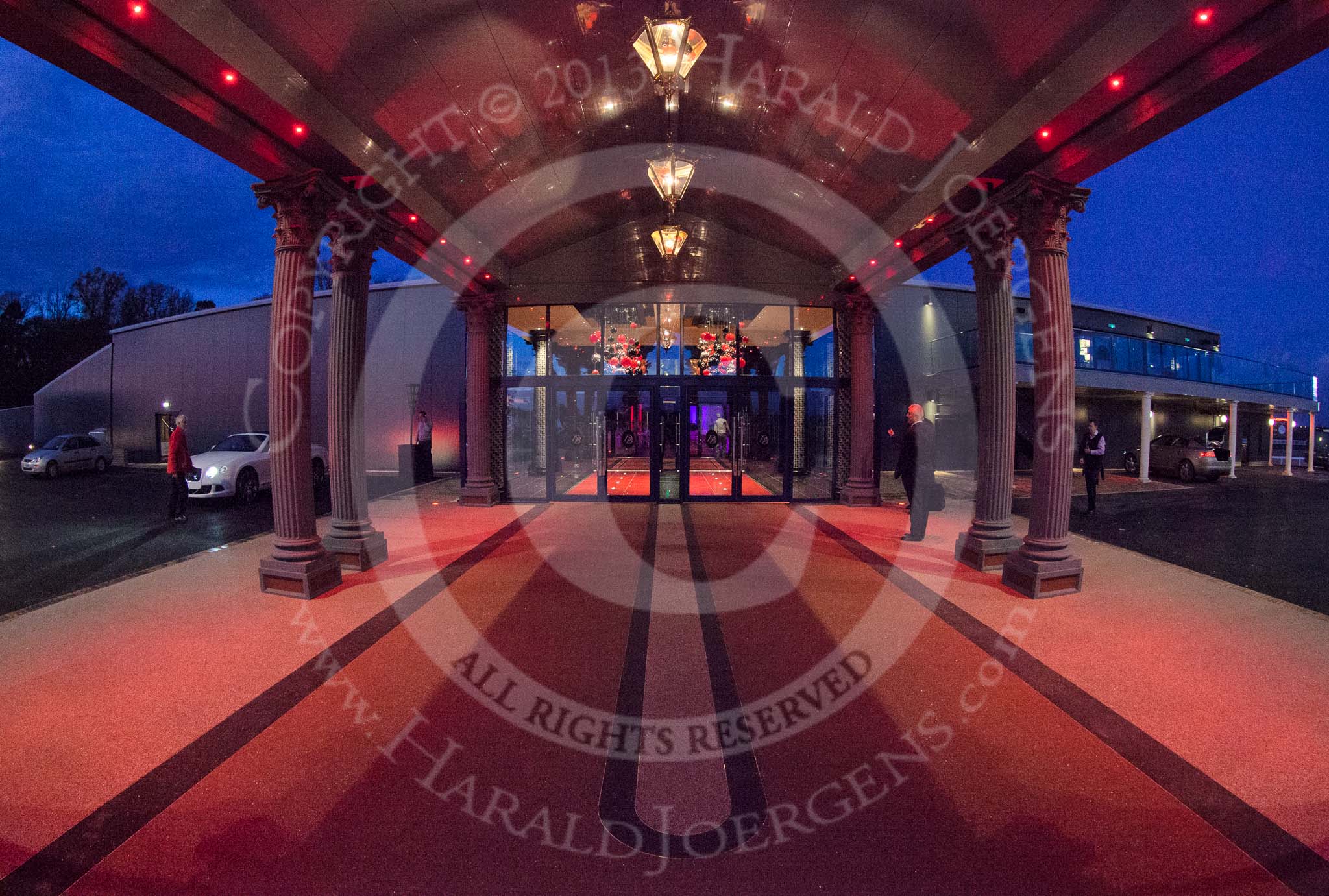 Grand Opening of the DBPC IXL Event Centre: A white Bentley and white Lamborghini Aventador next to the main entrance of the IXL Event Centre..
