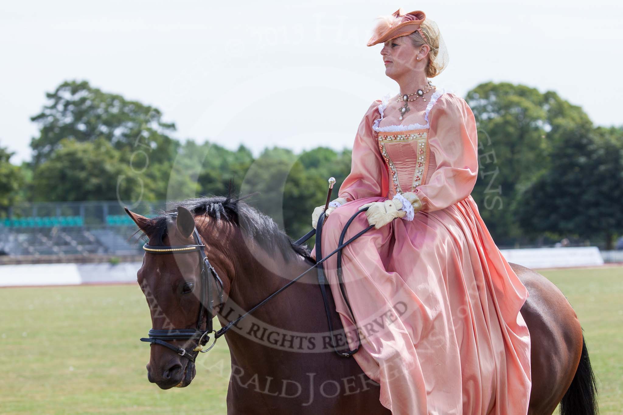DBPC Polo in the Park 2013, side saddle riding demonstration by the The Side Saddle Association.. Dallas Burston Polo Club, , Southam, Warwickshire, United Kingdom, on 01 September 2013 at 13:03, image #294