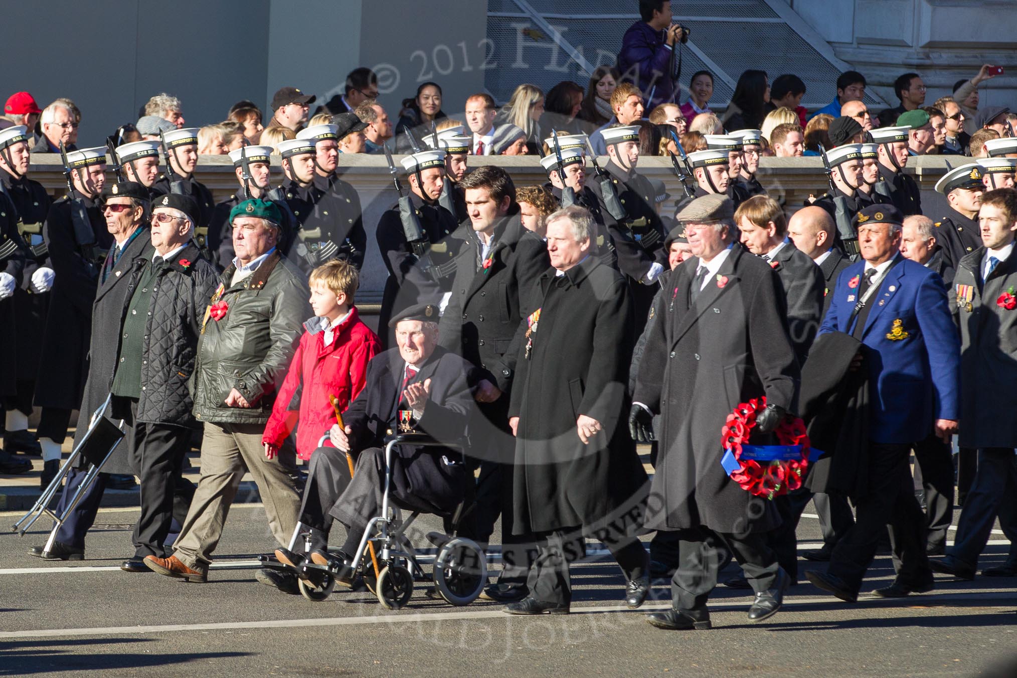 Remembrance Sunday 2012 Cenotaph March Past: Group F5 - Queen's Bodyguard of The Yeoman of The Guard and F6 - Popski's Private Army..