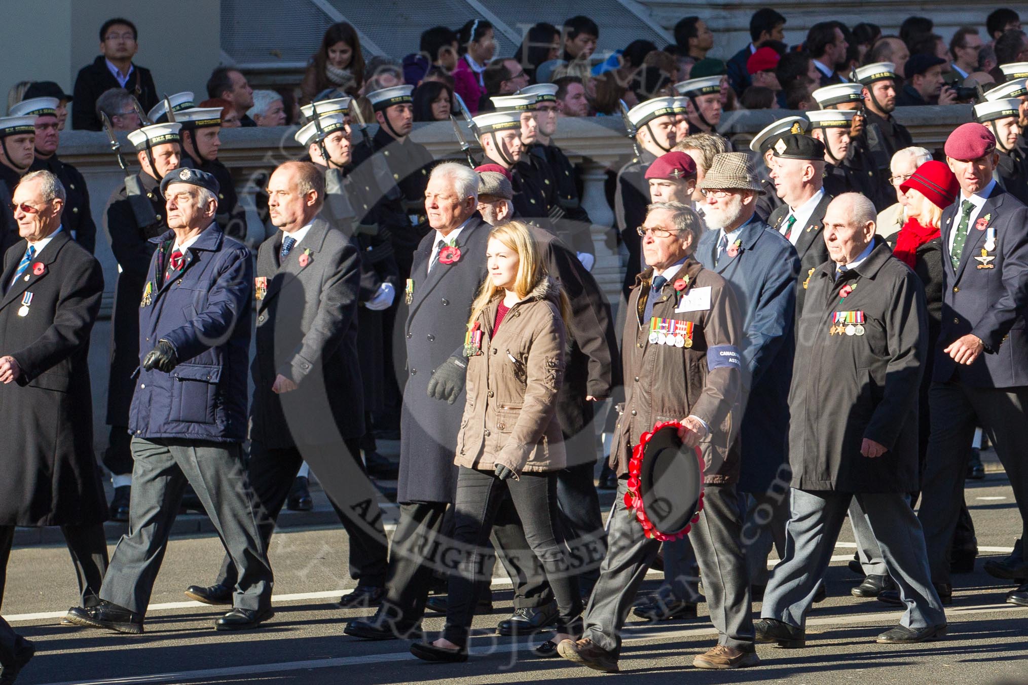 Remembrance Sunday 2012 Cenotaph March Past: Group D11 - Polish Ex-Combatants Association in Great Britain and D12 - Canadian Veterans Association..