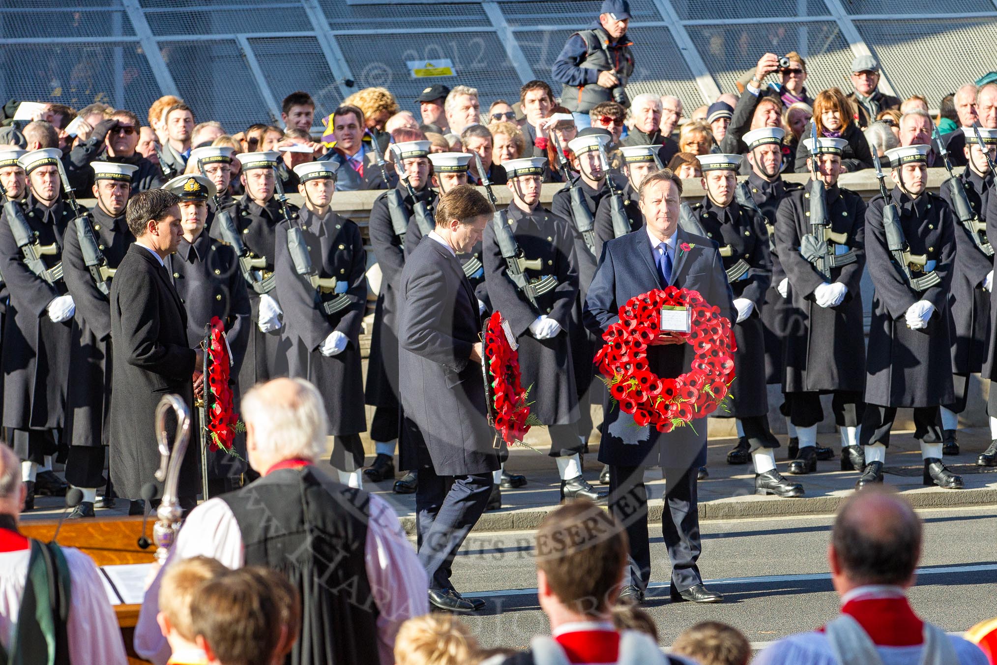 Remembrance Sunday at the Cenotaph 2012 The Prime Minister, The Rt Hon David Cameron MP, and the Leader of the Liberal Democrat Party, The Rt Hon Nick Clegg, and the Leader of the Opposition, The Rt Hon Ed Miliband.