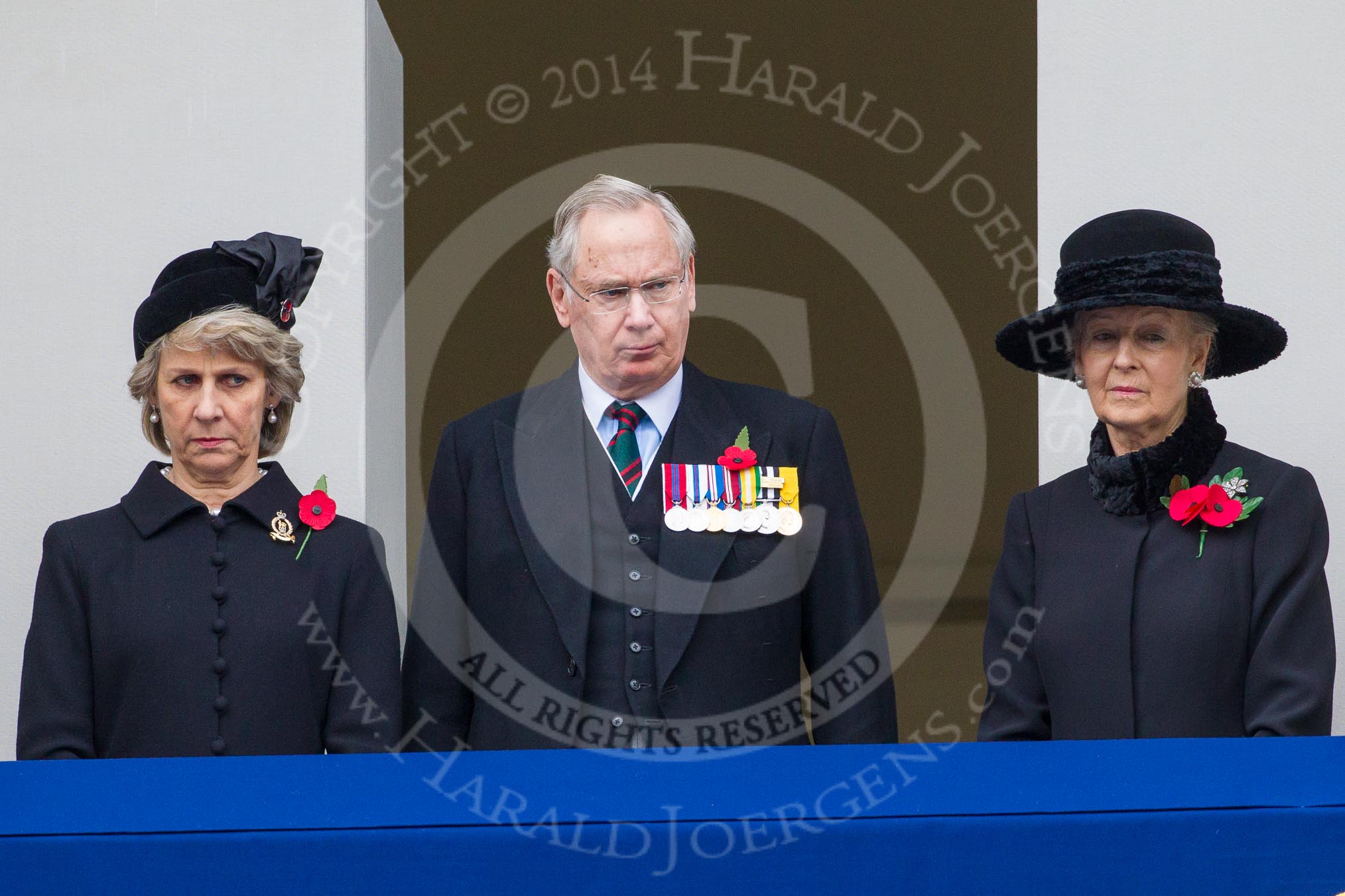 Remembrance Sunday at the Cenotaph in London 2014: THR The Duchess and Duke of Gloucester, and HRH Princess Alexandra, the Hon. Lady Ogilvy, on the centre balcony of the Foreign- and Commonwealth Office building.