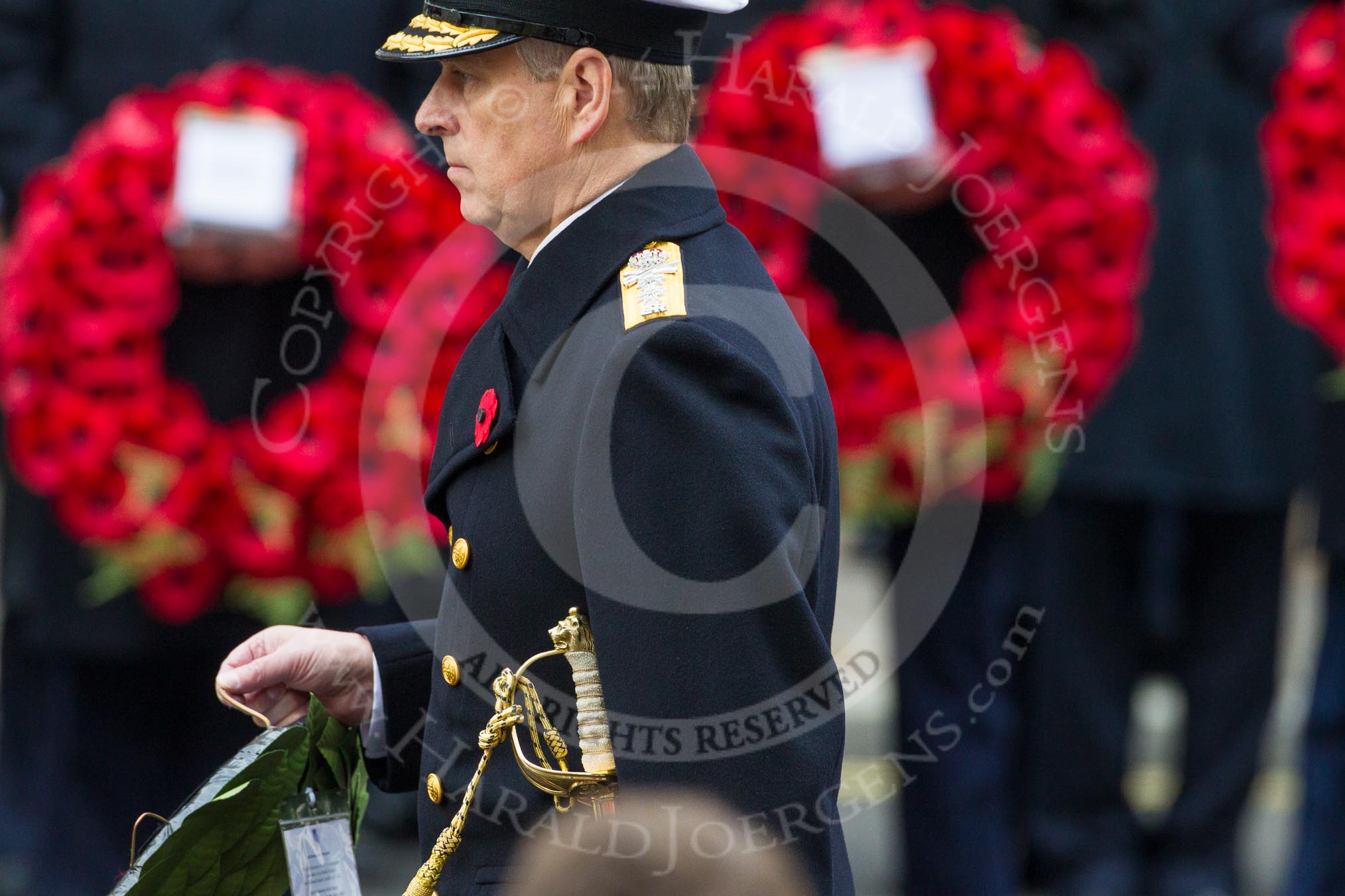 Remembrance Sunday at the Cenotaph in London 2014: HRH The Duke of York laying his wreath at the Cenotaph.
