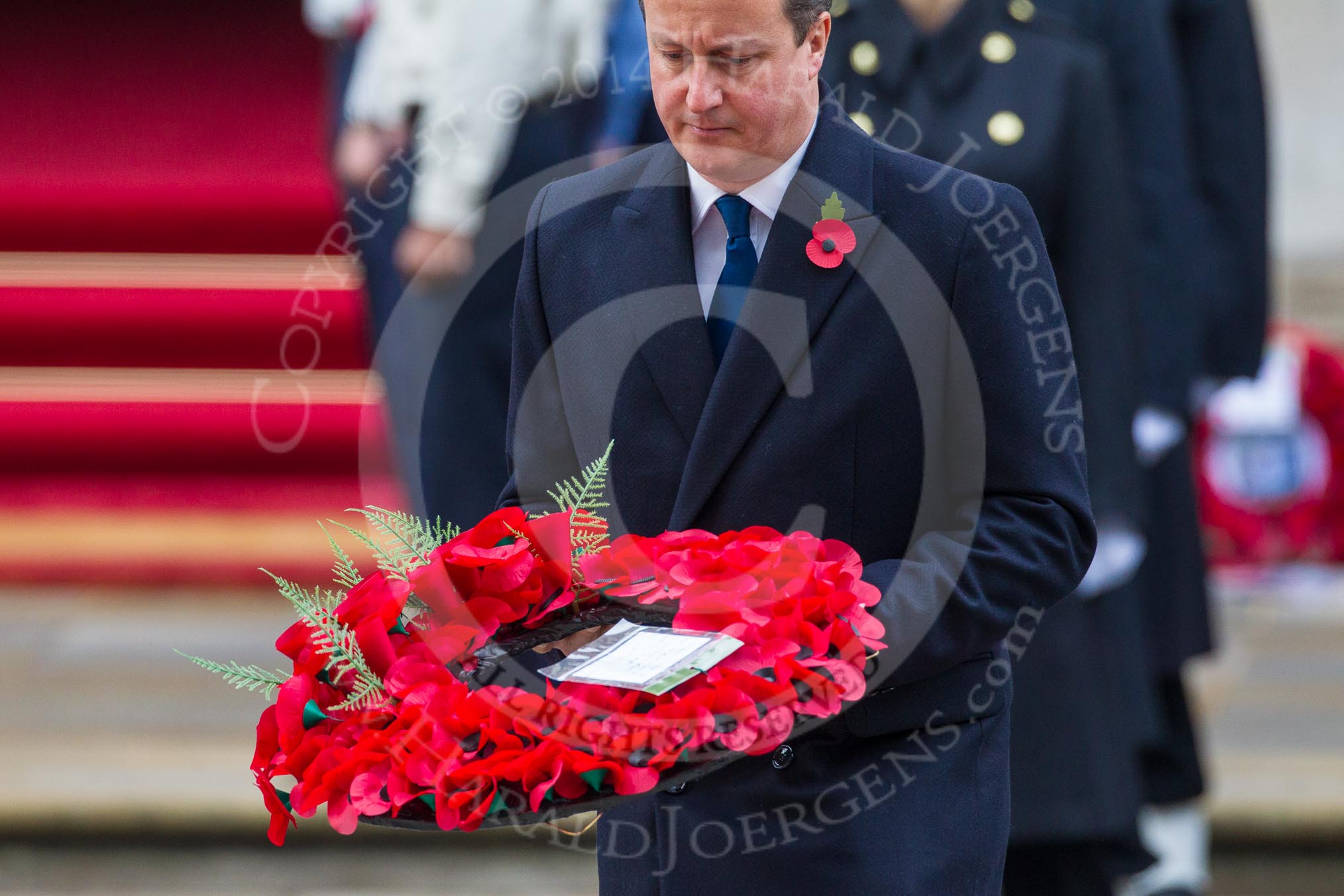 Remembrance Sunday at the Cenotaph in London 2014: The Prime Minister, the Rt Hon David Cameron, laying a wreath at the Cenotaph.