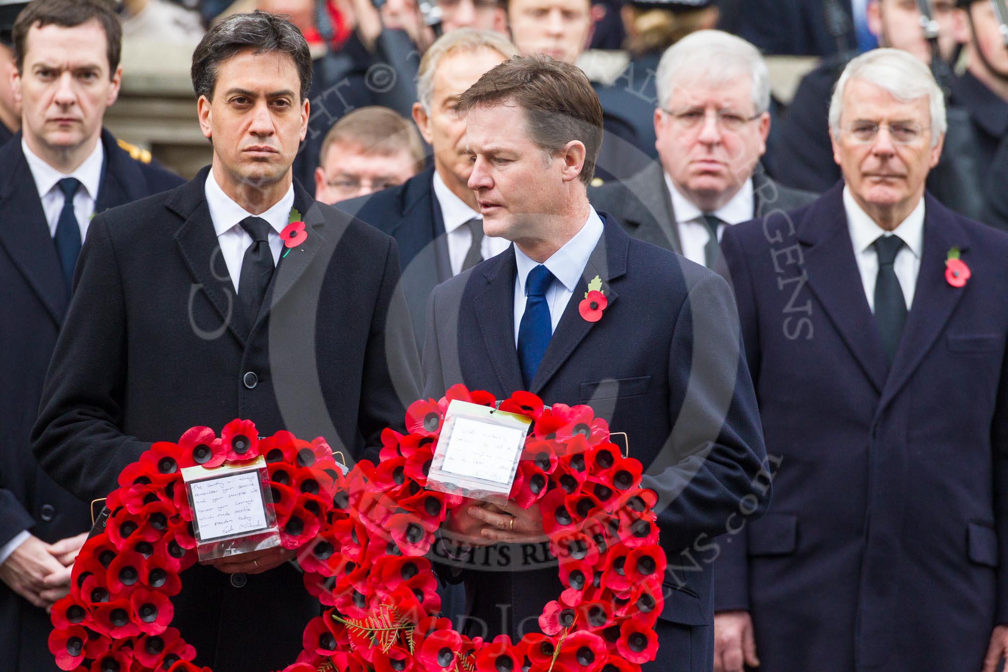 Remembrance Sunday at the Cenotaph in London 2014: Nick Clegg, as leader of the Liberal Democrats, walking towards the Cenotaph with his wreath.