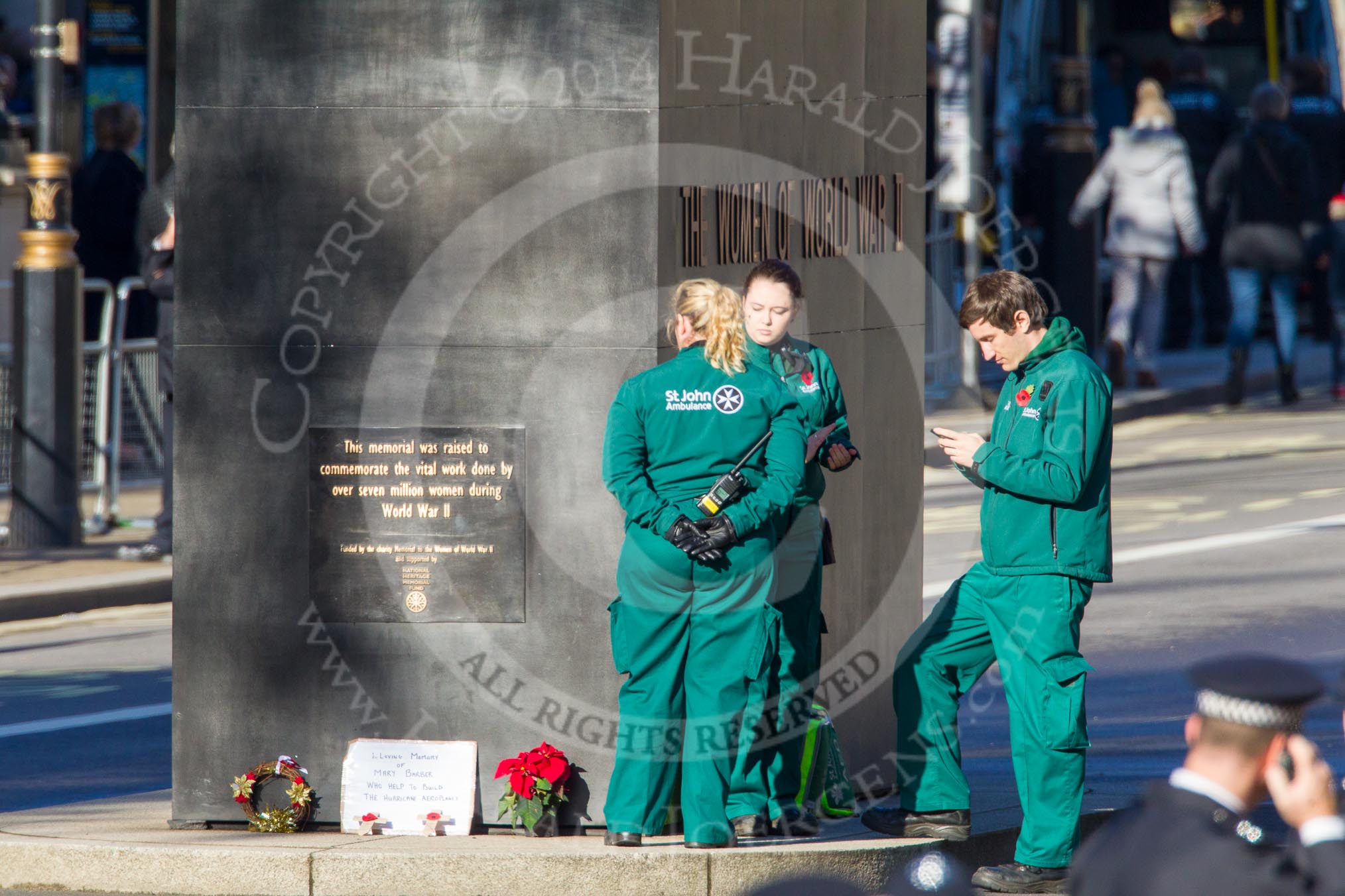 Remembrance Sunday at the Cenotaph in London 2014: After the March Past - St John Ambulance the the Memorial for The Women of World War II.