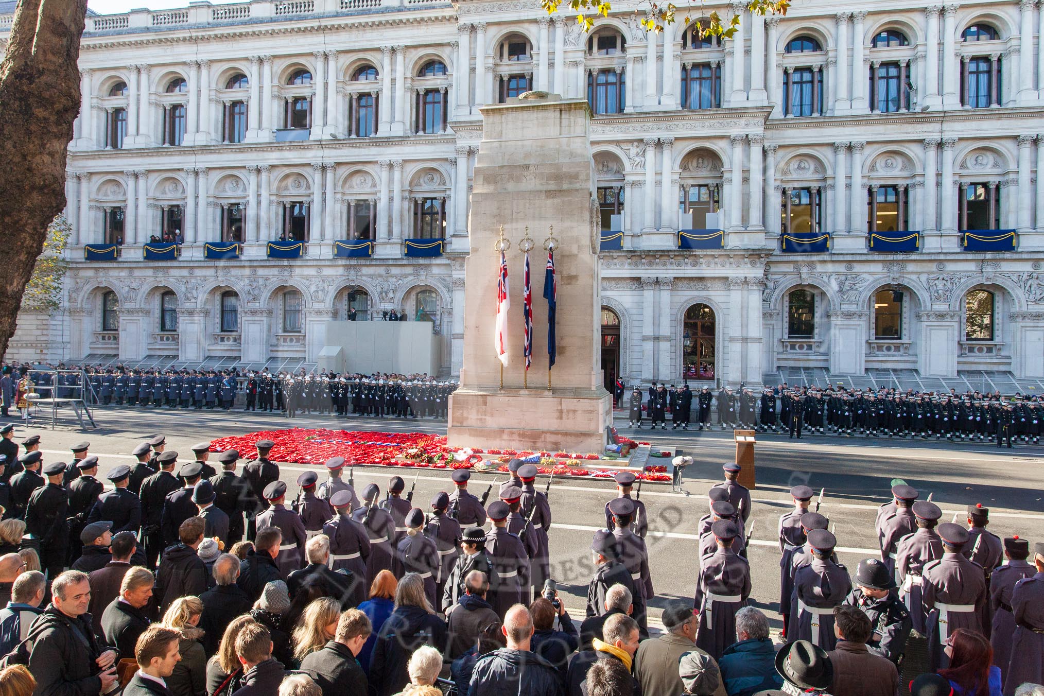 Remembrance Sunday at the Cenotaph in London 2014: The Royal Navy detachment is leaving Whitehall. There are hundreds of photos of all service detachments coming onto, and leaving Whitehall, please ask!.