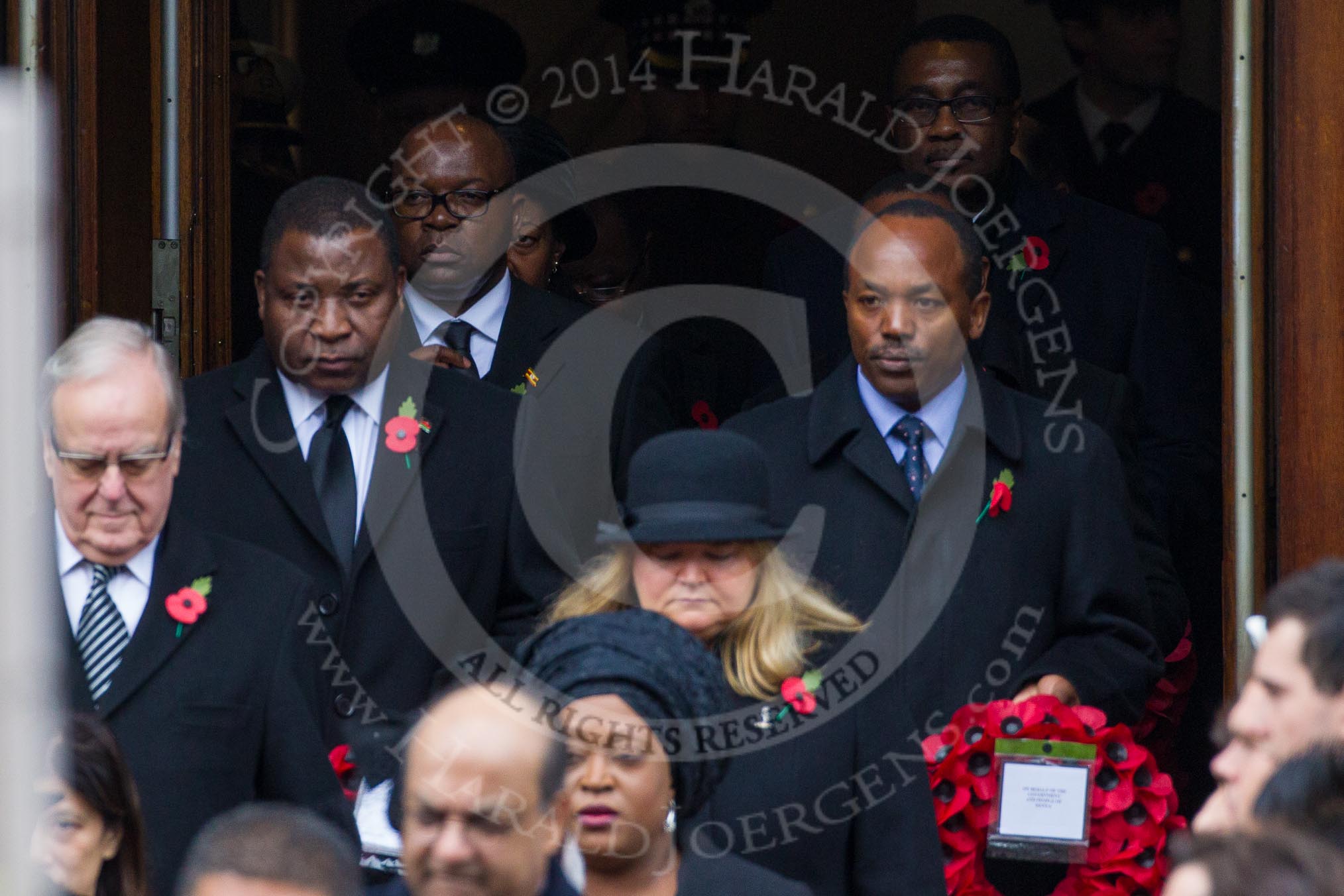 Remembrance Sunday at the Cenotaph in London 2014: The High Commissioners emerging from the door of the Foreign- and Commonwealth Office.