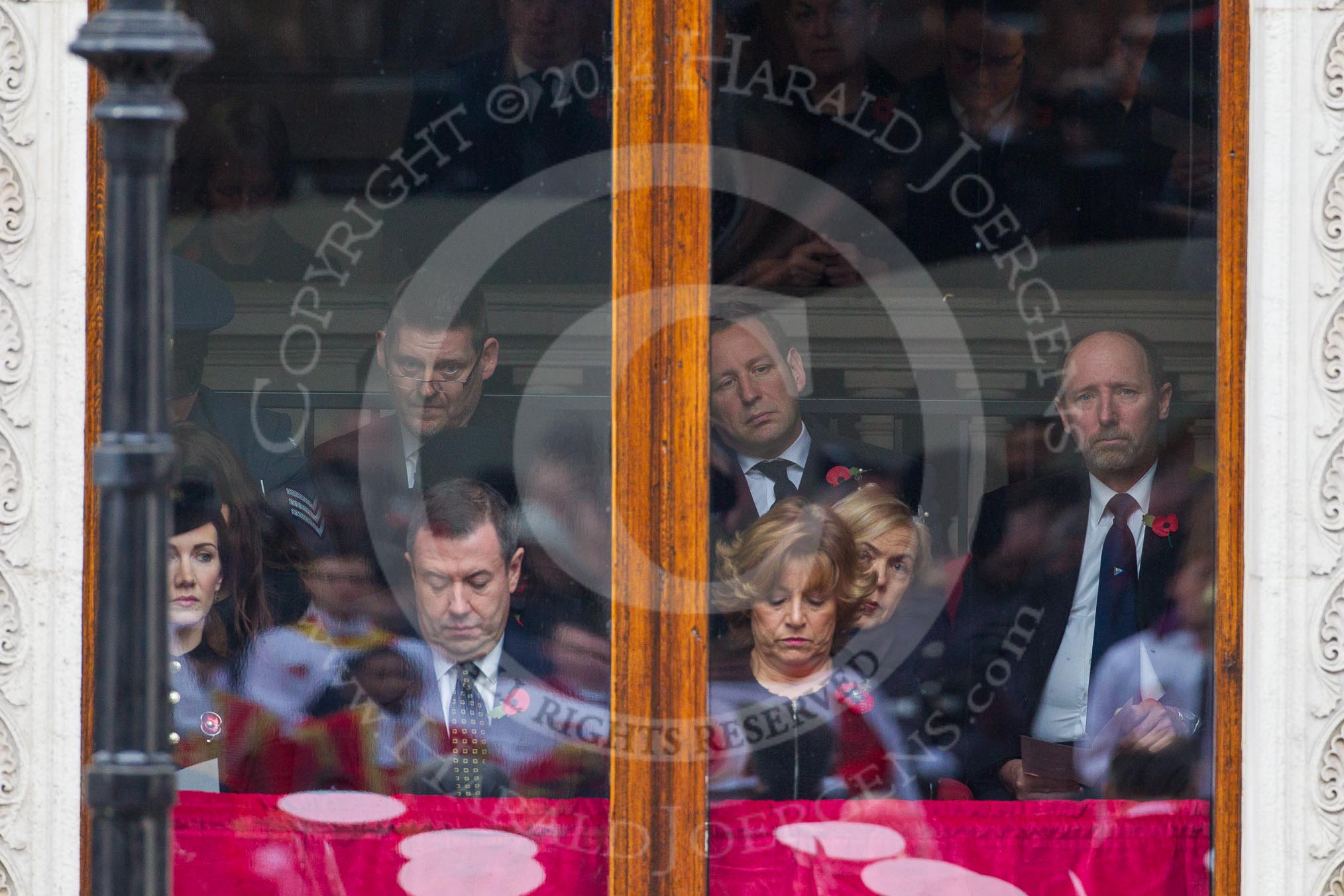 Remembrance Sunday at the Cenotaph in London 2014: Guests watching the service from inside the Foreign- and Commonwealth Office.