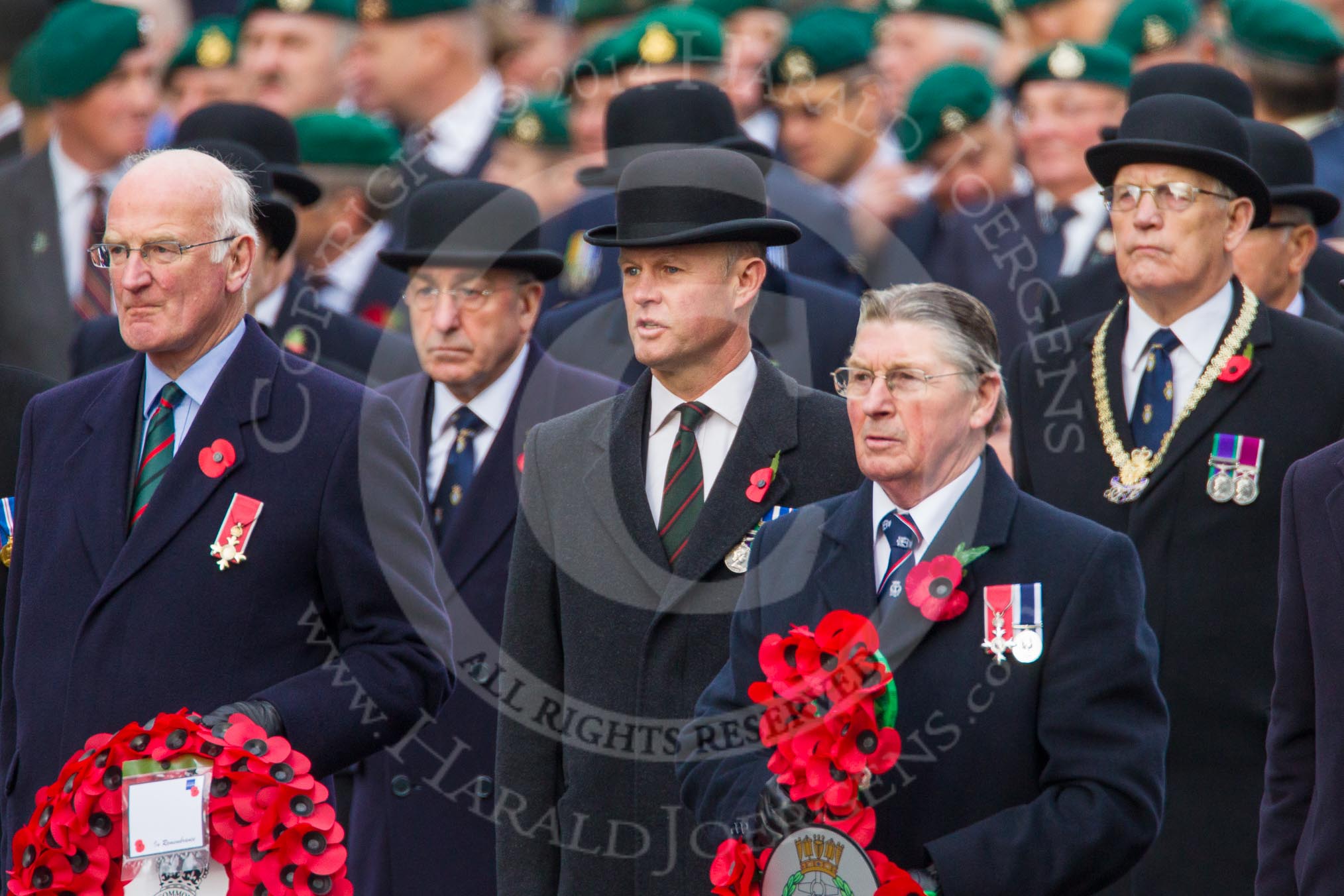 Remembrance Sunday at the Cenotaph in London 2014: The representatives of the major charities about to lay their wreaths at the Cenotaph.