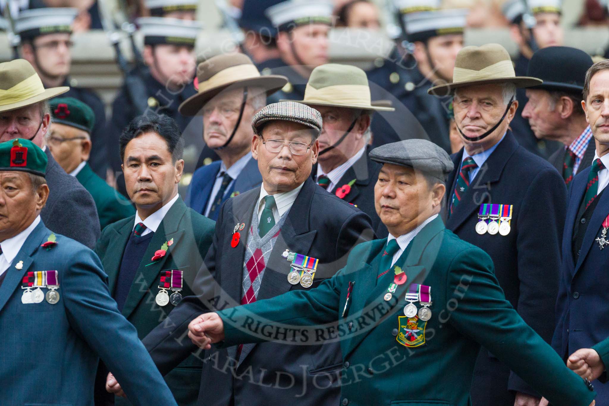 Photo 1511081154311D41435HaraldJoergens Remembrance Sunday at the Cenotaph 2015: Group D16, Gurkha Brigade Association. Cenotaph, Whitehall, London SW1, London, Greater London, United Kingdom, on 08 November 2015 at 11:54, image #680