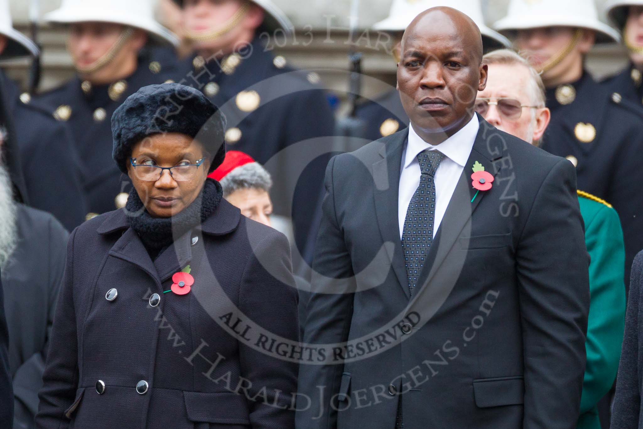 Remembrance Sunday at the Cenotaph 2015: The Minister Counsellor of Jamaica and the High Commissioner of Tanzania standing at the Cenotaph. Image #313, 08 November 2015 11:19 Whitehall, London, UK