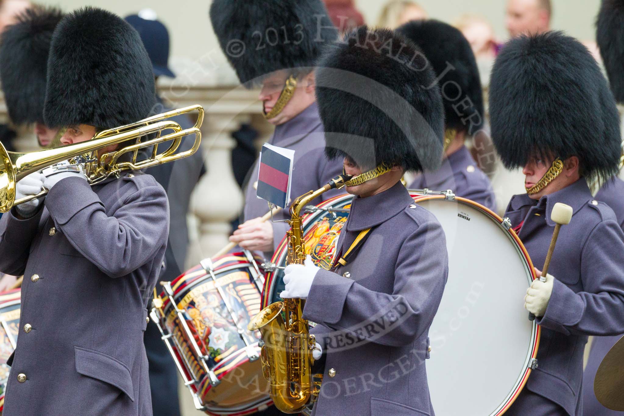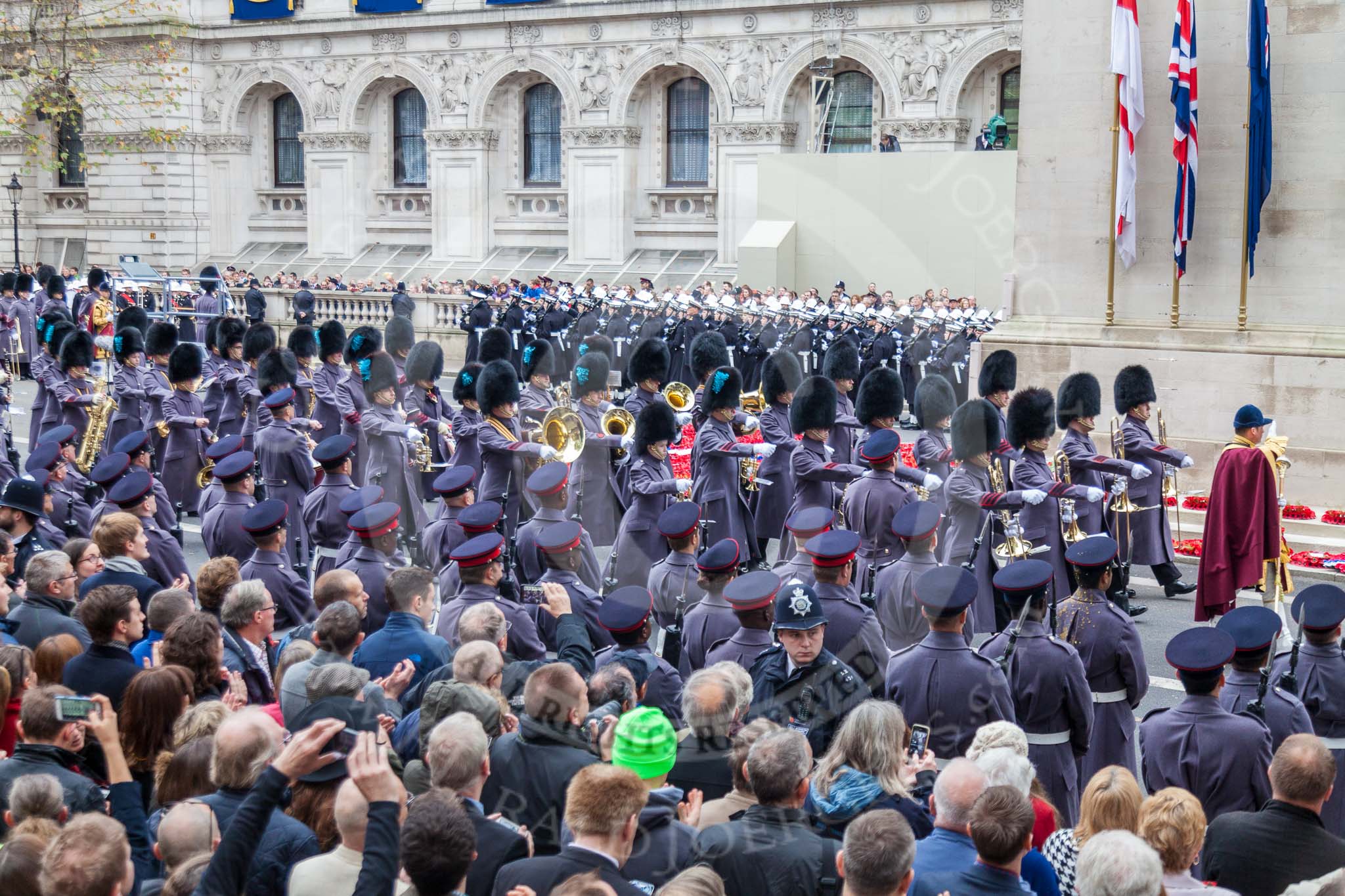 Remembrance Sunday at the Cenotaph 2015: After the March Past - the Massed Bands are marching off. Image #361, 08 November 2015 12:27 Whitehall, London, UK