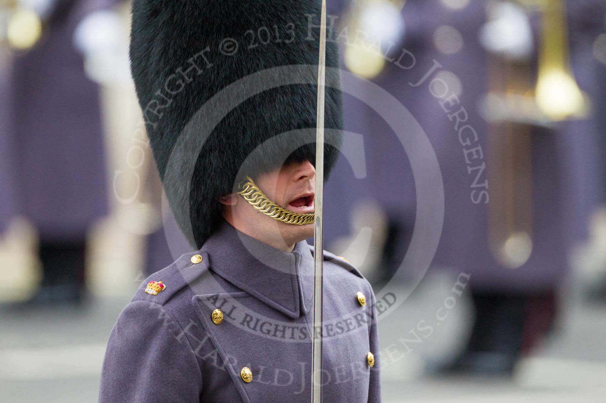 Remembrance Sunday at the Cenotaph 2015: A Foot Guards Major commanding the Foot Guards after the event. Image #363, 08 November 2015 12:29 Whitehall, London, UK
