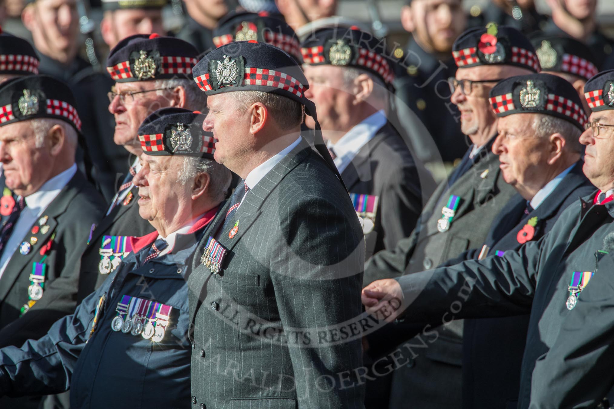 KOSB -The Kings Own Scottish Borderers Association (Group A9, 75 members) during the Royal British Legion March Past on Remembrance Sunday at the Cenotaph, Whitehall, Westminster, London, 11 November 2018, 11:57.