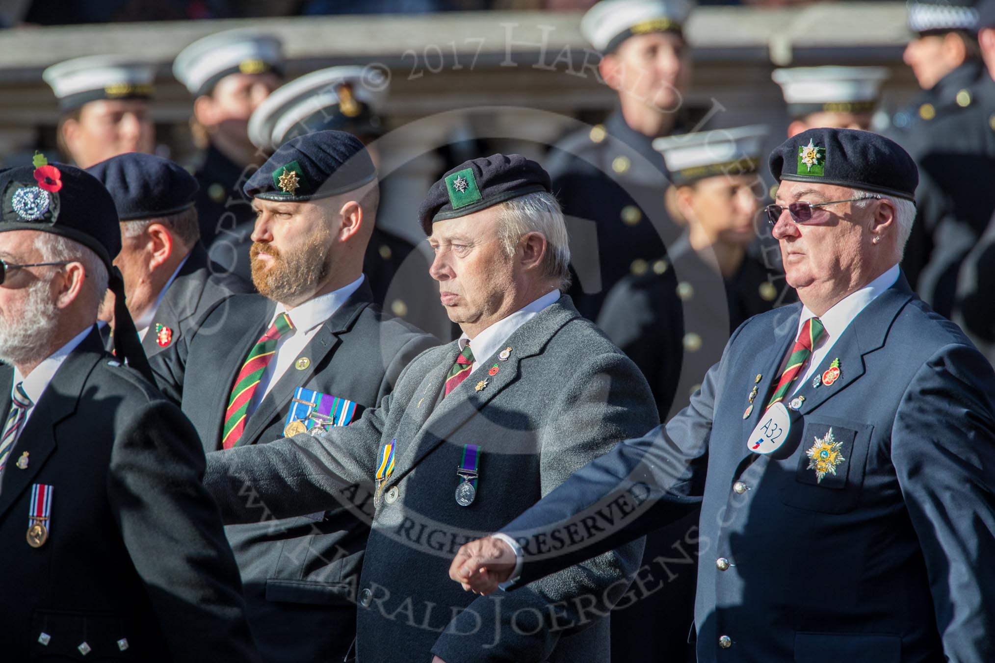 Long Eaton Branch The Worcestershire and Sherwood Forest Association (Group A32, 9 members) during the Royal British Legion March Past on Remembrance Sunday at the Cenotaph, Whitehall, Westminster, London, 11 November 2018, 12:02.