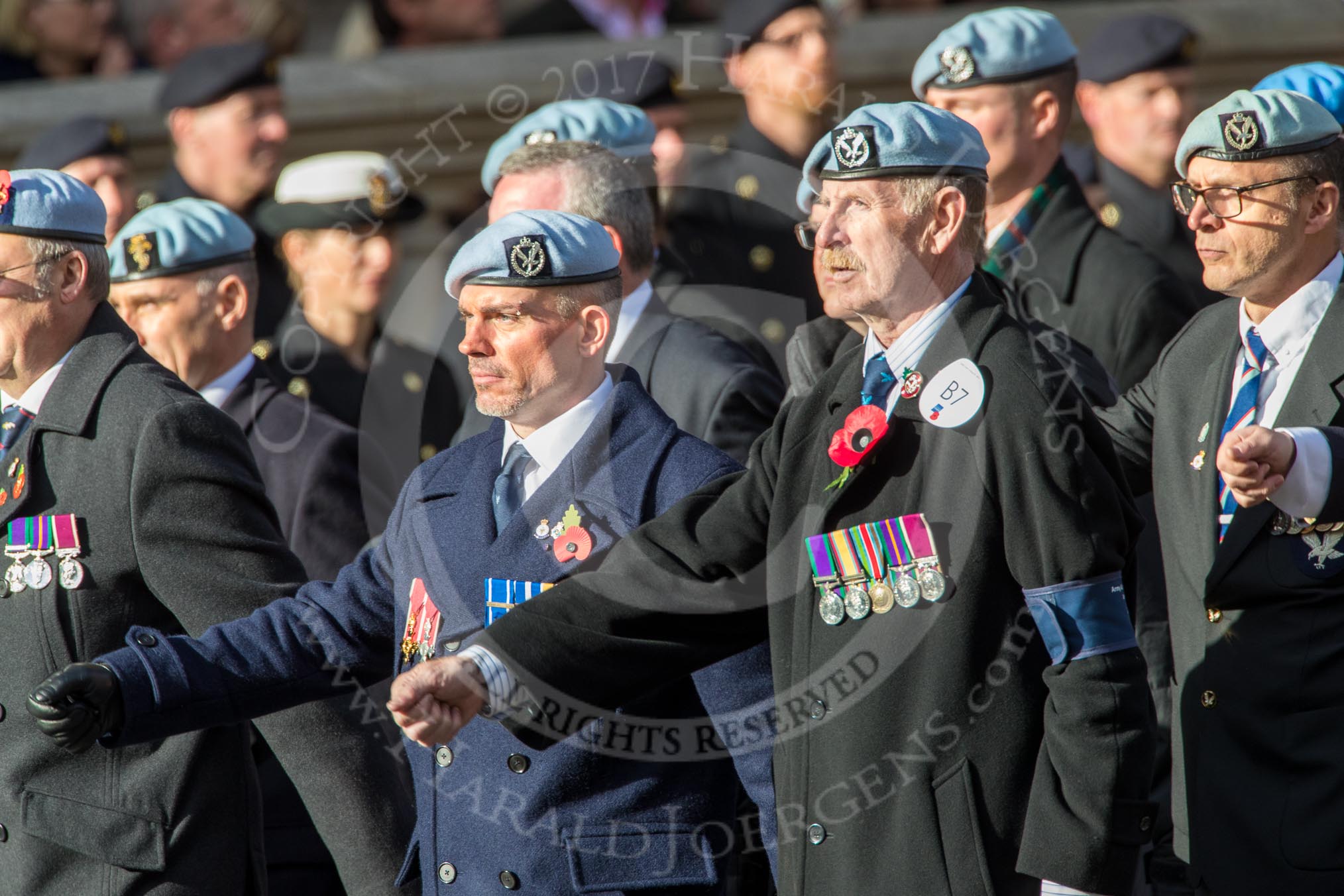 Photo #1471 (1811111207121X25815HaraldJoergens) Army Air Corps Veteran Association (Group B7, 42 members) during the Royal British Legion March Past on Remembrance Sunday at the Cenotaph, Whitehall, Westminster, London, 11 November 2018, 12:07.