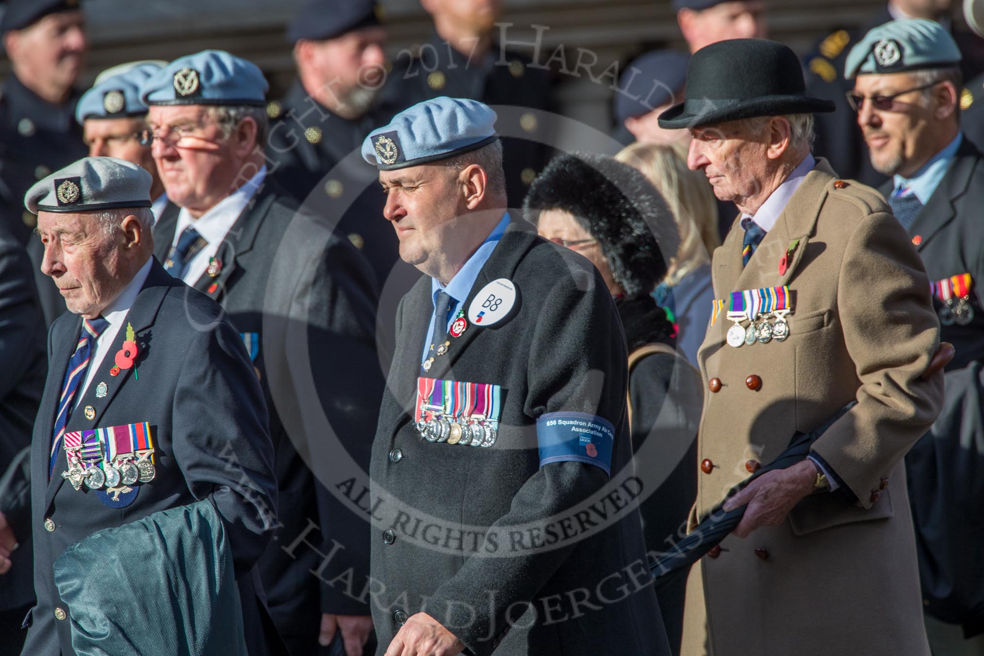 Photo #1487 (1811111207251X25855HaraldJoergens) 656 Squadron Association (Group B8, 24 members) during the Royal British Legion March Past on Remembrance Sunday at the Cenotaph, Whitehall, Westminster, London, 11 November 2018, 12:07.
