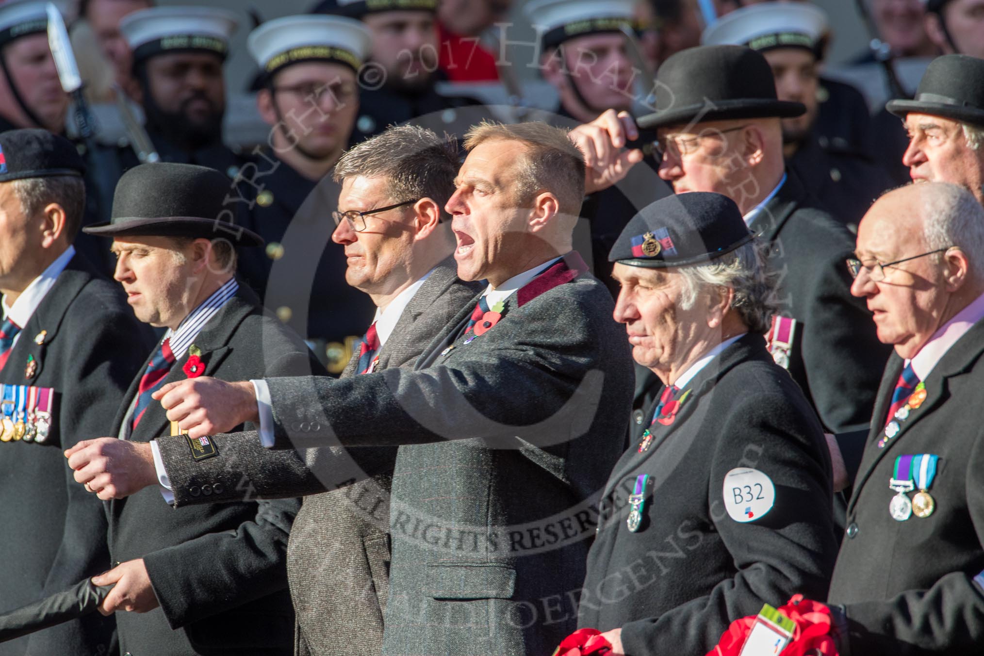 Photo #1626 (1811111212491X26571HaraldJoergens) The Household Cavalry Associations (Group B32, 24 members) during the Royal British Legion March Past on Remembrance Sunday at the Cenotaph, Whitehall, Westminster, London, 11 November 2018, 12:12.