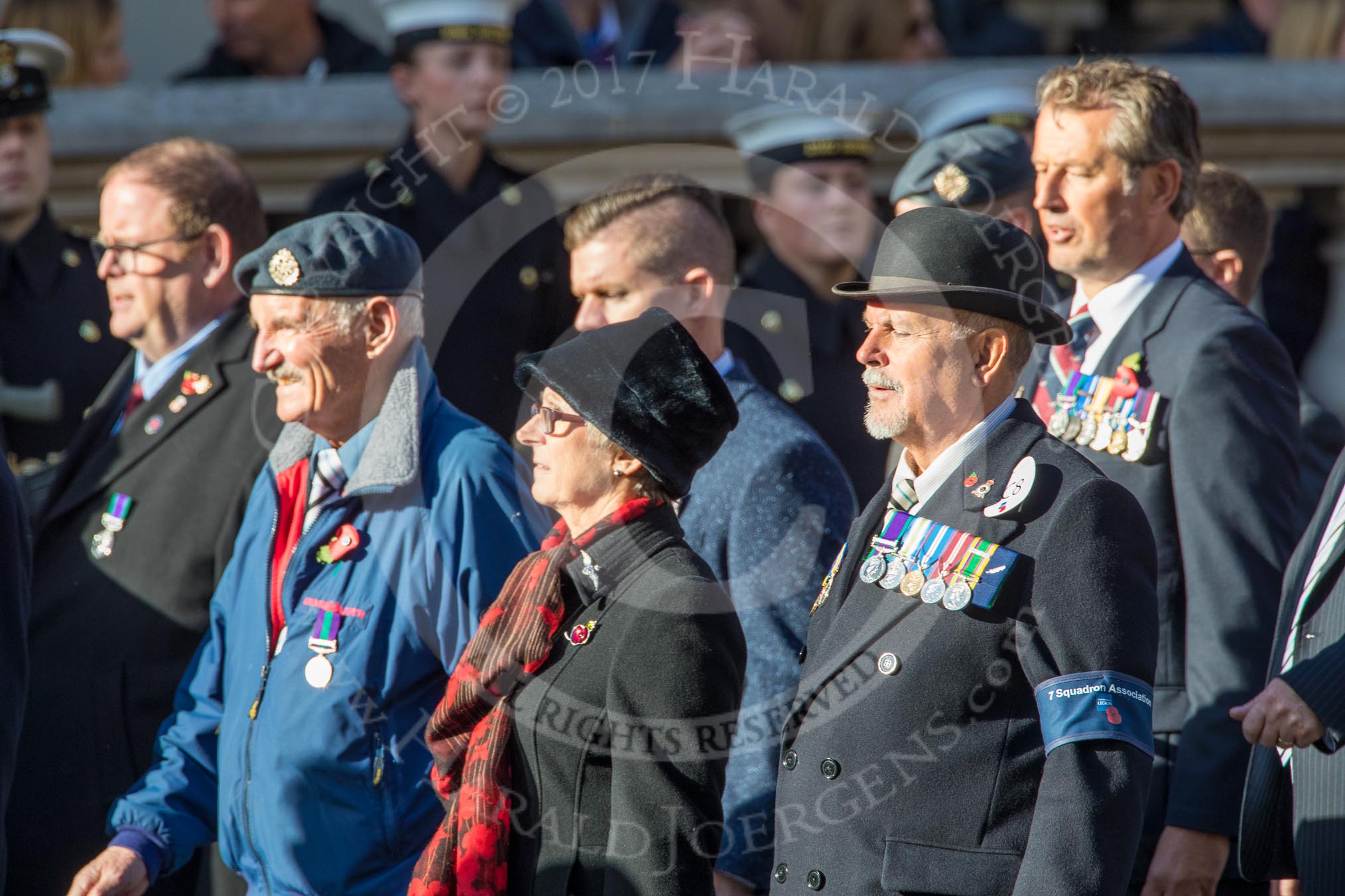 Photo #1828 (1811111216021X27066HaraldJoergens) 7 Squadron Association (Group C8, 20 members) during the Royal British Legion March Past on Remembrance Sunday at the Cenotaph, Whitehall, Westminster, London, 11 November 2018, 12:15.