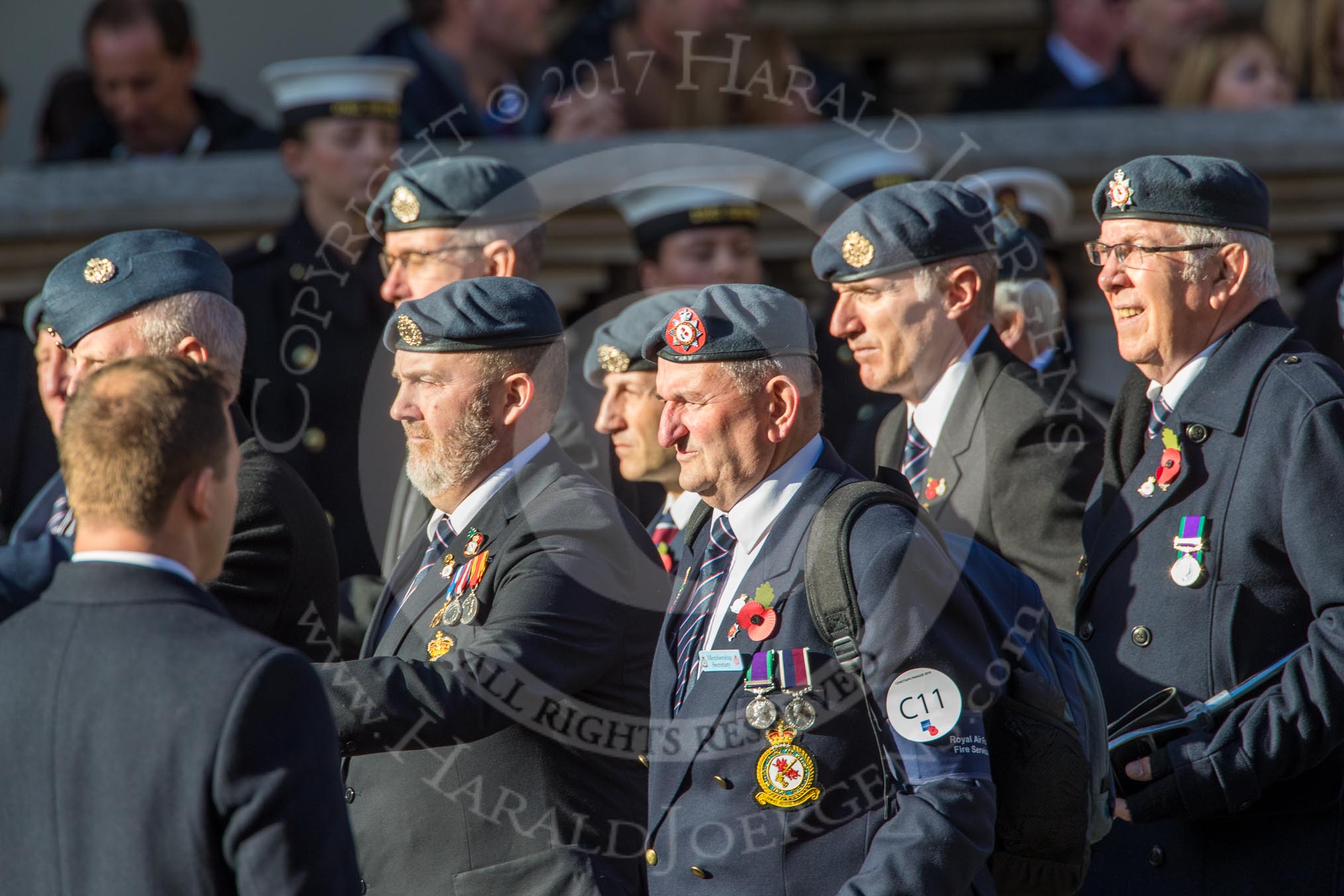 Photo #1849 (1811111216201X27110HaraldJoergens) RAFDFSA (Group C11, 22 members) during the Royal British Legion March Past on Remembrance Sunday at the Cenotaph, Whitehall, Westminster, London, 11 November 2018, 12:16.