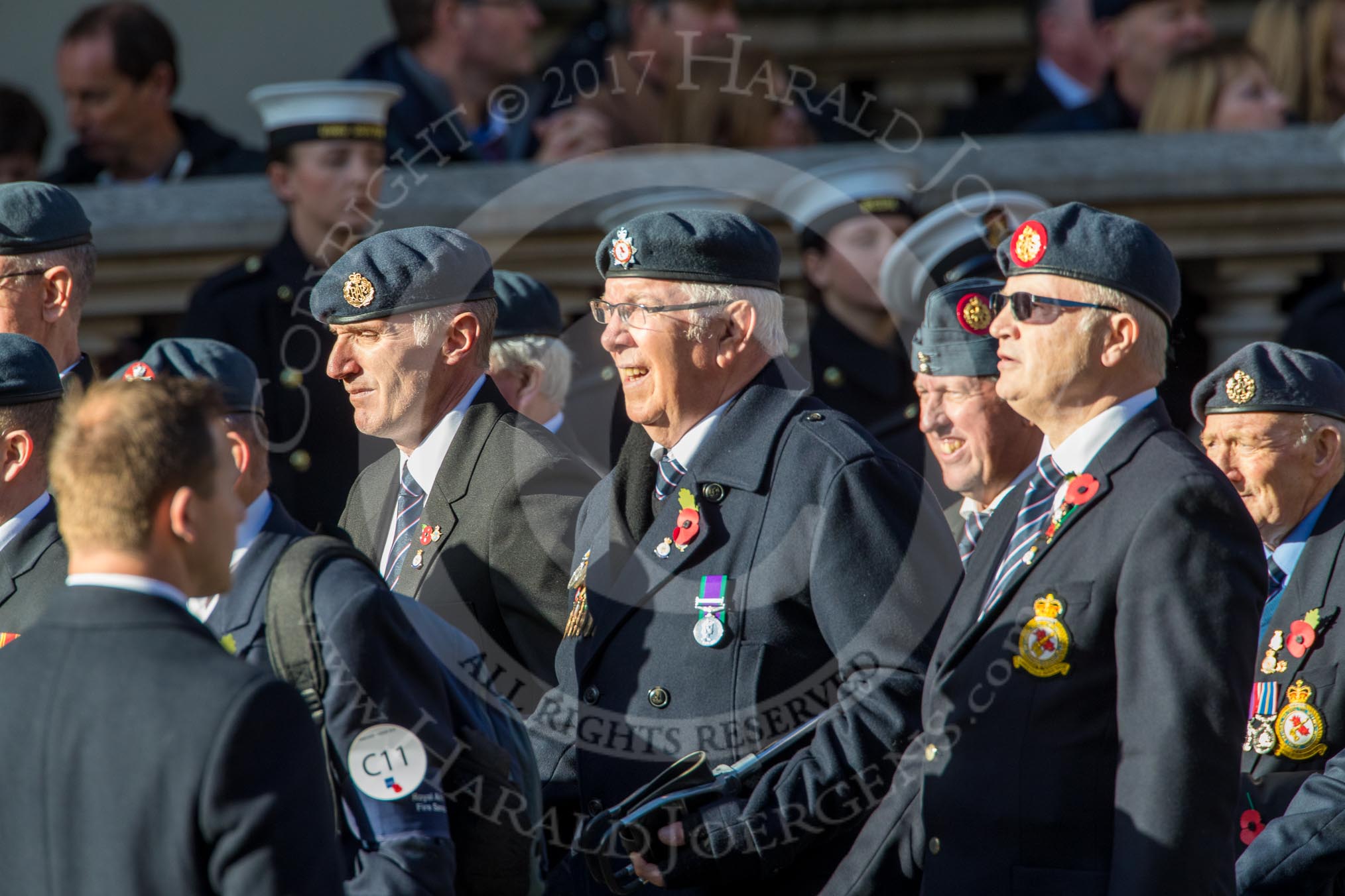 Photo #1850 (1811111216201X27111HaraldJoergens) RAFDFSA (Group C11, 22 members) during the Royal British Legion March Past on Remembrance Sunday at the Cenotaph, Whitehall, Westminster, London, 11 November 2018, 12:16.
