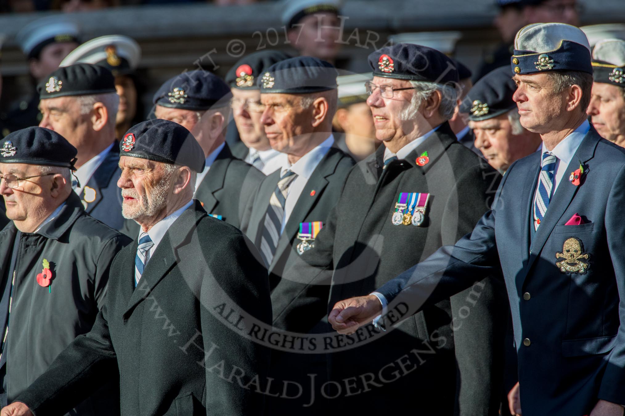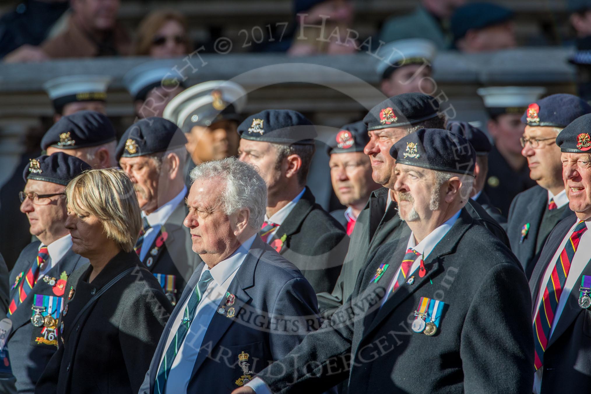 The 16th/5th Queen's Royal Lancers OCA (Group B23, 39 members) during the Royal British Legion March Past on Remembrance Sunday at the Cenotaph, Whitehall, Westminster, London, 11 November 2018, 12:11.