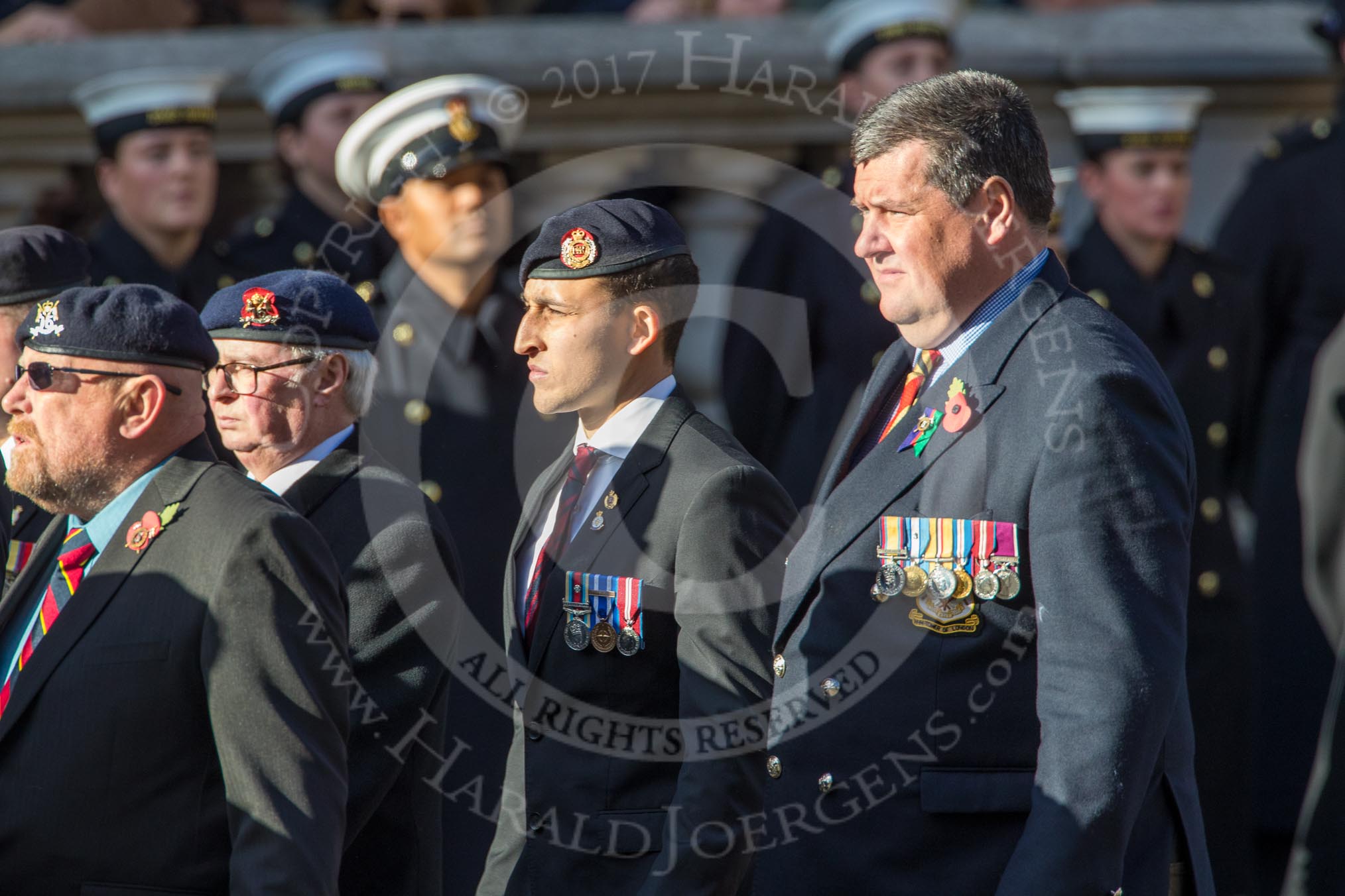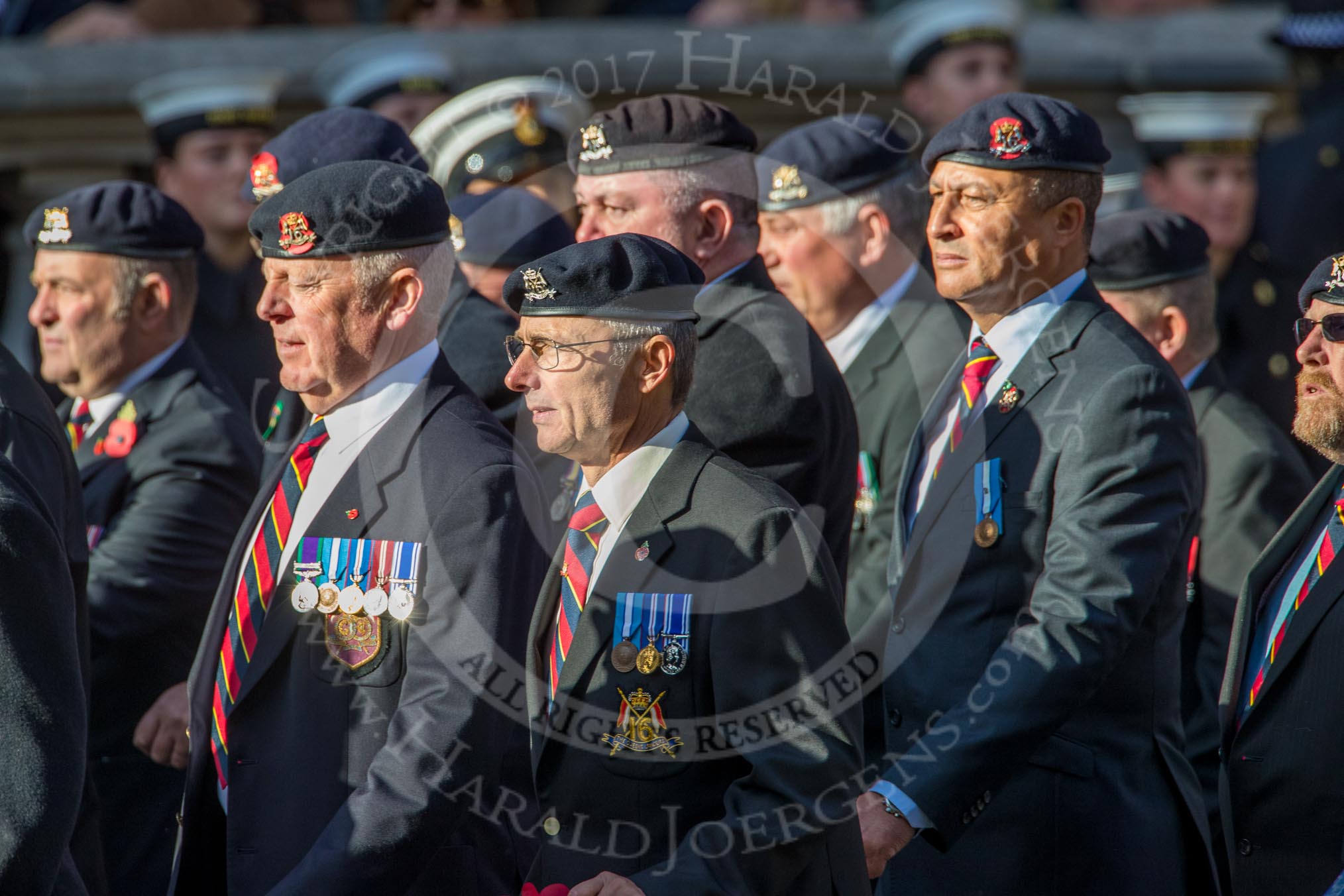 The 16th/5th Queen's Royal Lancers OCA (Group B23, 39 members)during the Royal British Legion March Past on Remembrance Sunday at the Cenotaph, Whitehall, Westminster, London, 11 November 2018, 12:10.