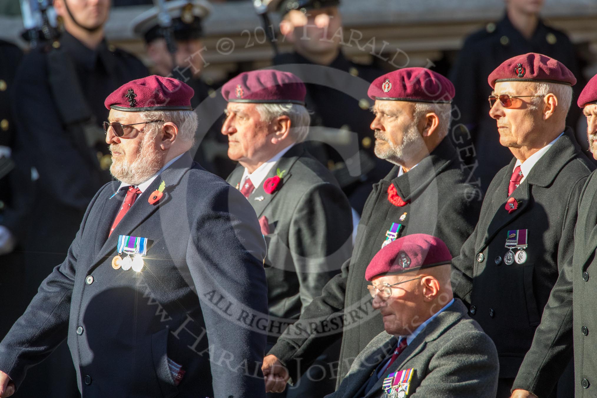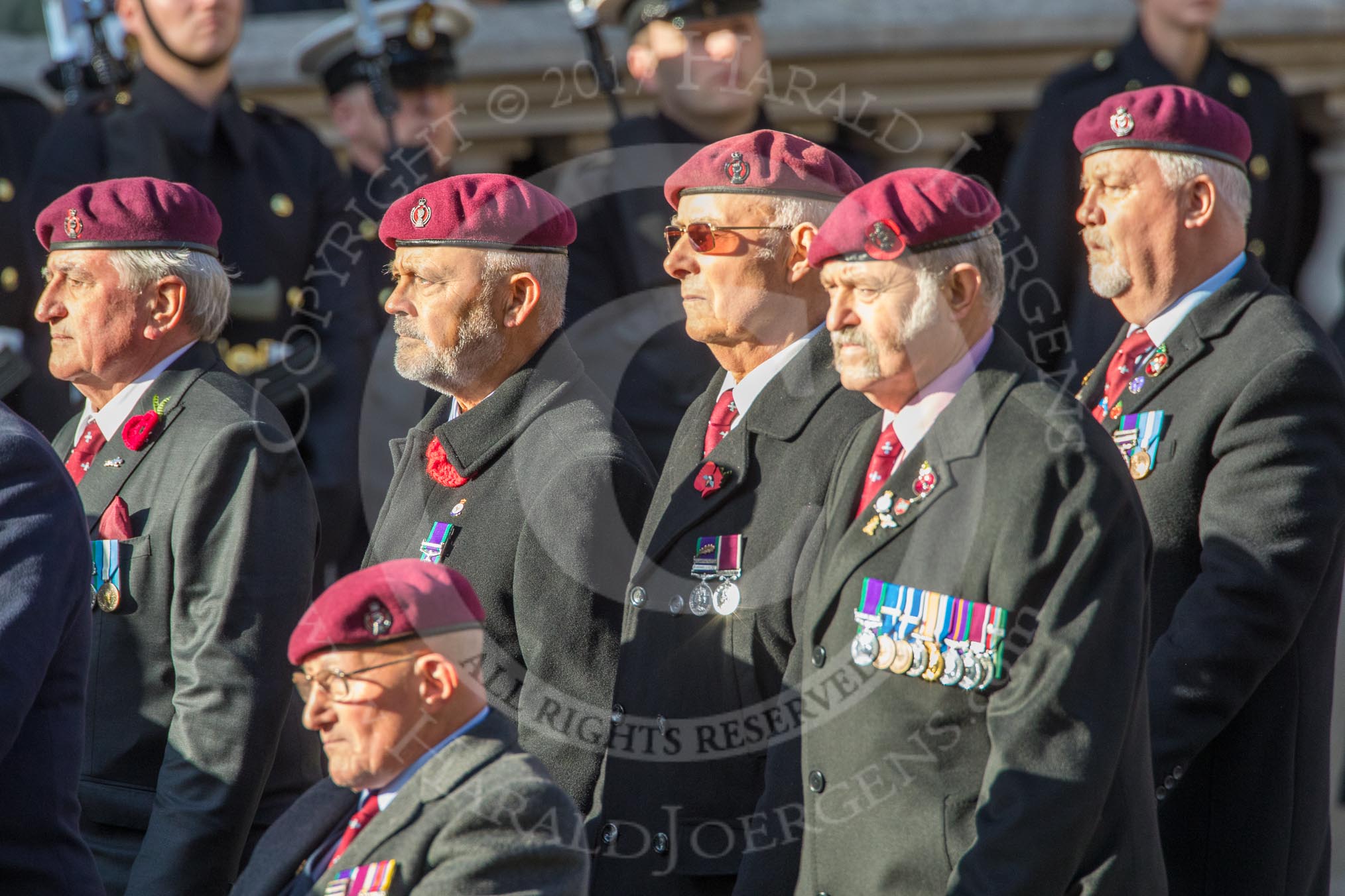 The Parachute Squadron Royal Armoured Corps (Group B28, 19 members) during the Royal British Legion March Past on Remembrance Sunday at the Cenotaph, Whitehall, Westminster, London, 11 November 2018, 12:12.