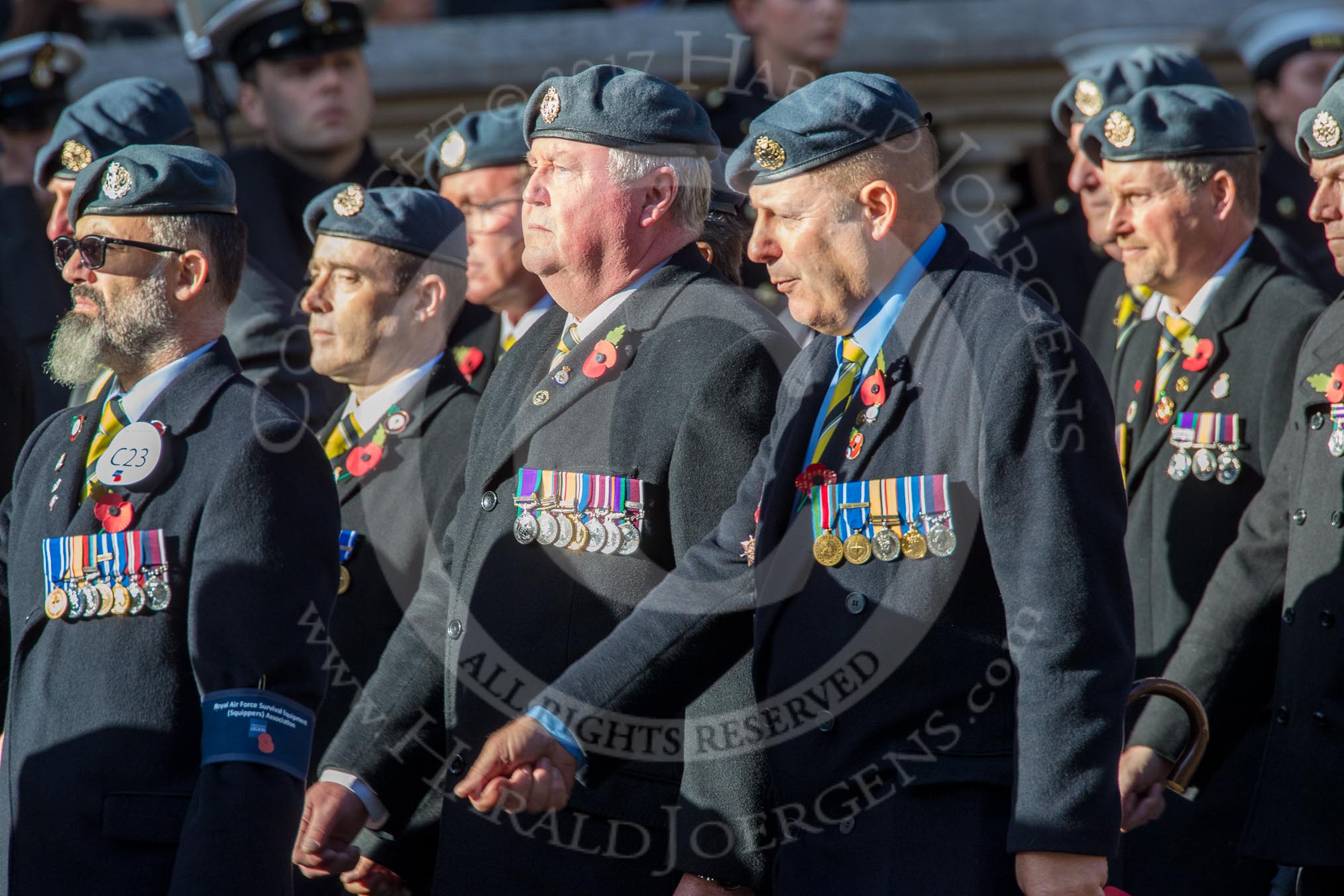 Royal Air Force Survival Equipment (squippers) Association (Group C23, 50 members) during the Royal British Legion March Past on Remembrance Sunday at the Cenotaph, Whitehall, Westminster, London, 11 November 2018, 12:18.