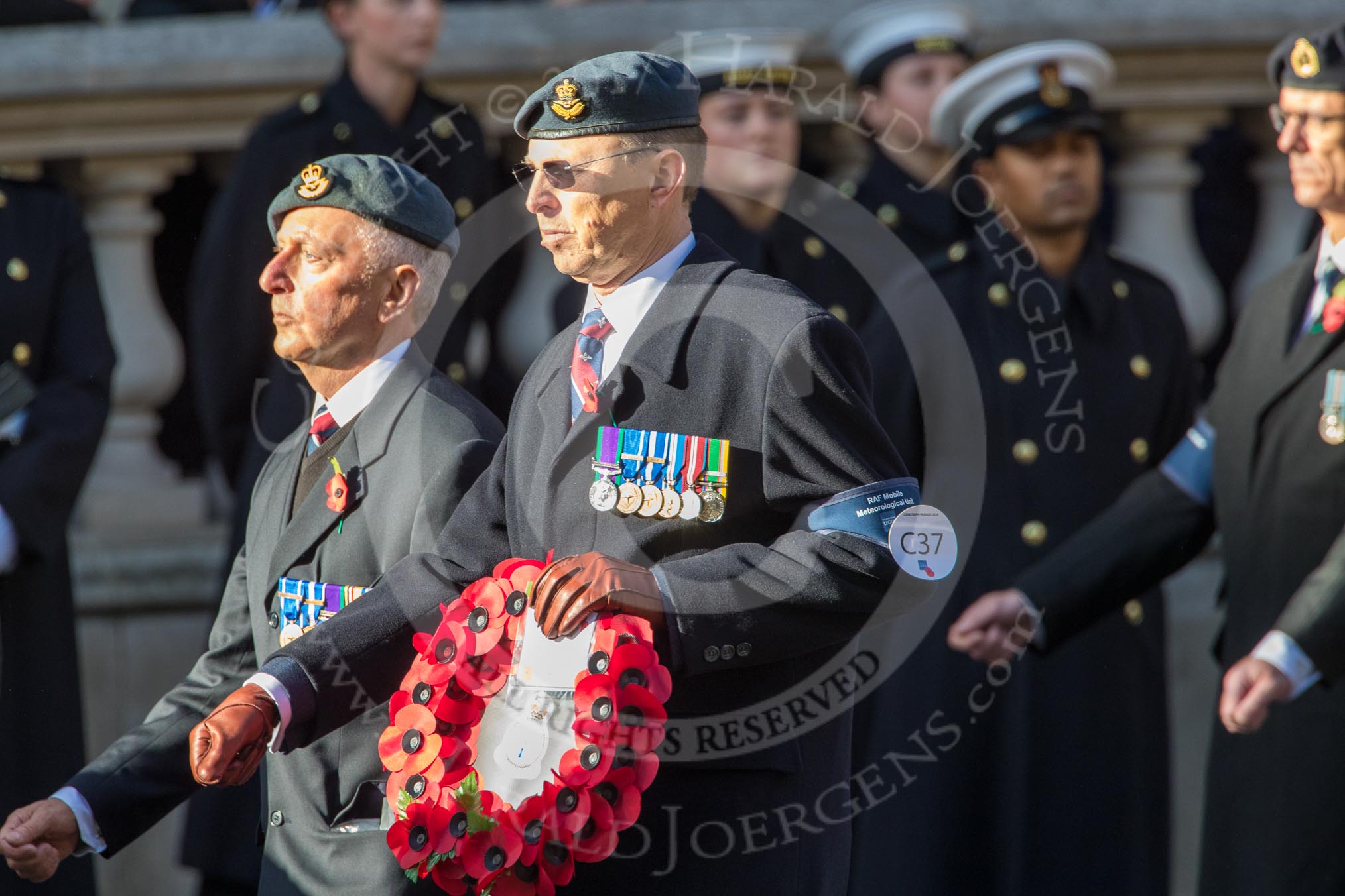 RAF Mobile Meteorological Unit (Group C37, 5 members) during the Royal British Legion March Past on Remembrance Sunday at the Cenotaph, Whitehall, Westminster, London, 11 November 2018, 12:20.