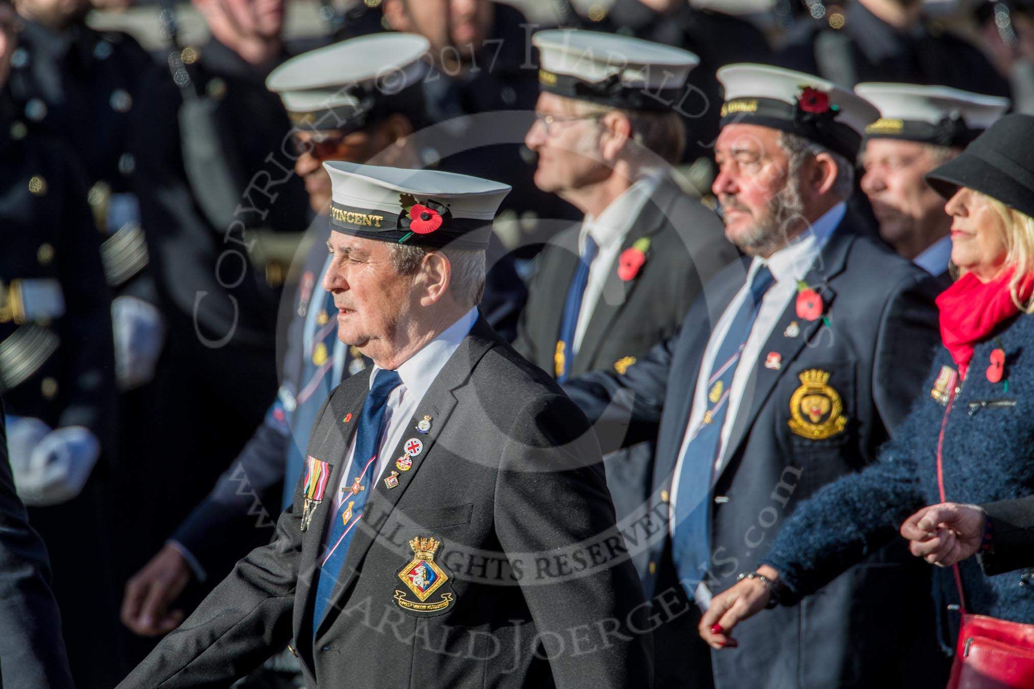 HMS St. Vincent Association (Group E24, 14 members) during the Royal British Legion March Past on Remembrance Sunday at the Cenotaph, Whitehall, Westminster, London, 11 November 2018, 11:44.