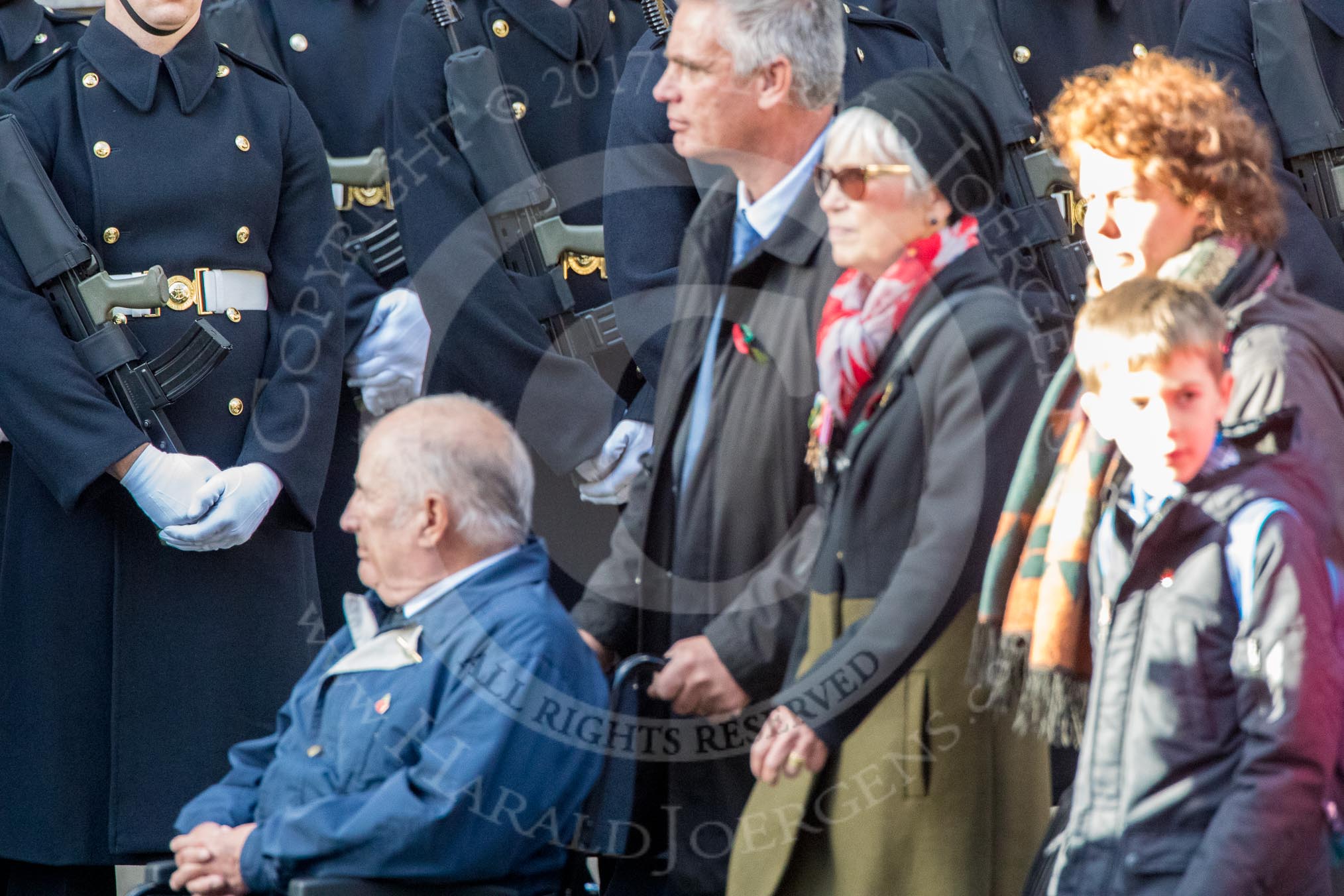 Children (and Families) of Far East Prisoners of War (Group M2, 59 members) during the Royal British Legion March Past on Remembrance Sunday at the Cenotaph, Whitehall, Westminster, London, 11 November 2018, 12:25.