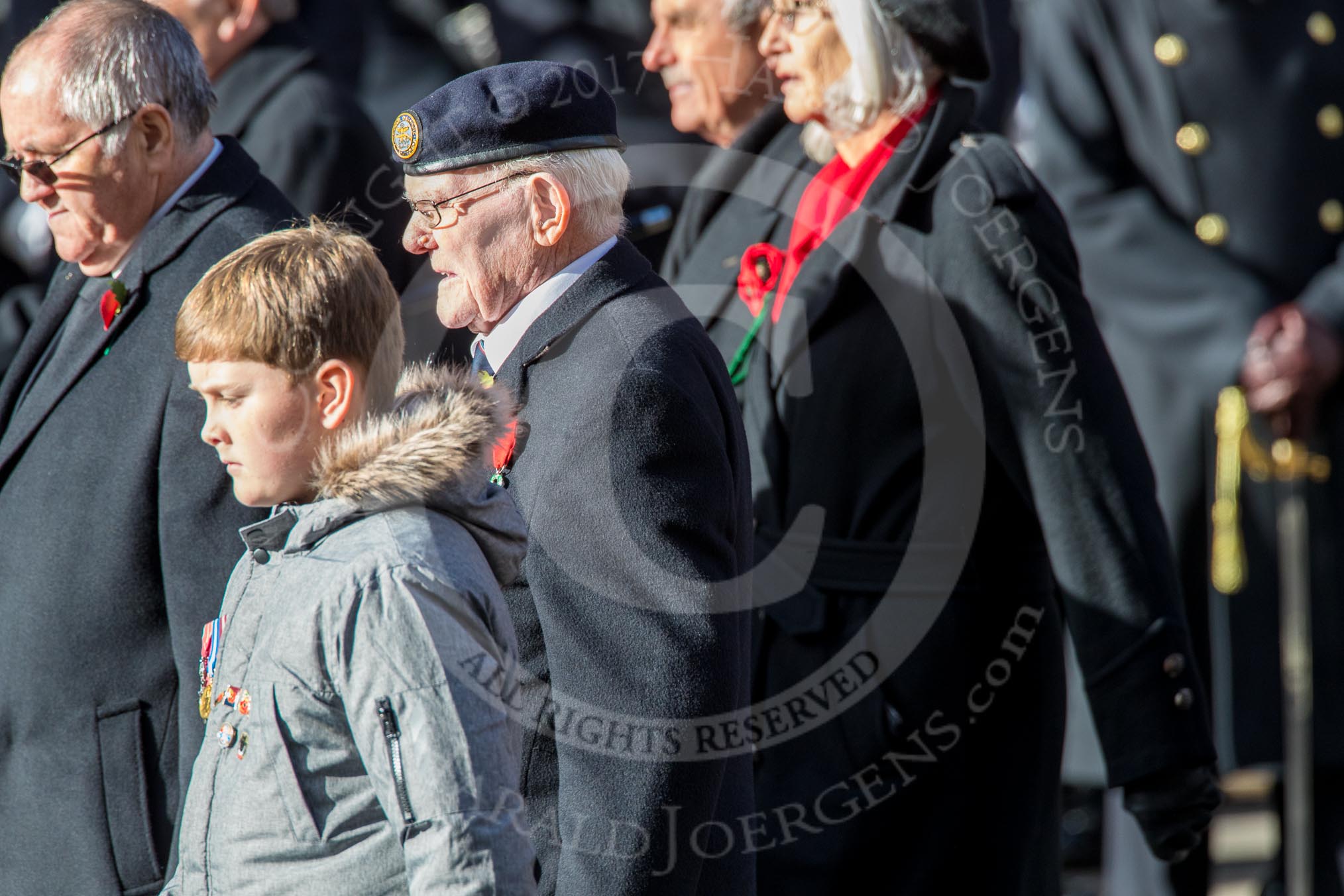 The Ammunition Technicians' Association (Group F28, 37 members) during the Royal British Legion March Past on Remembrance Sunday at the Cenotaph, Whitehall, Westminster, London, 11 November 2018, 11:54.