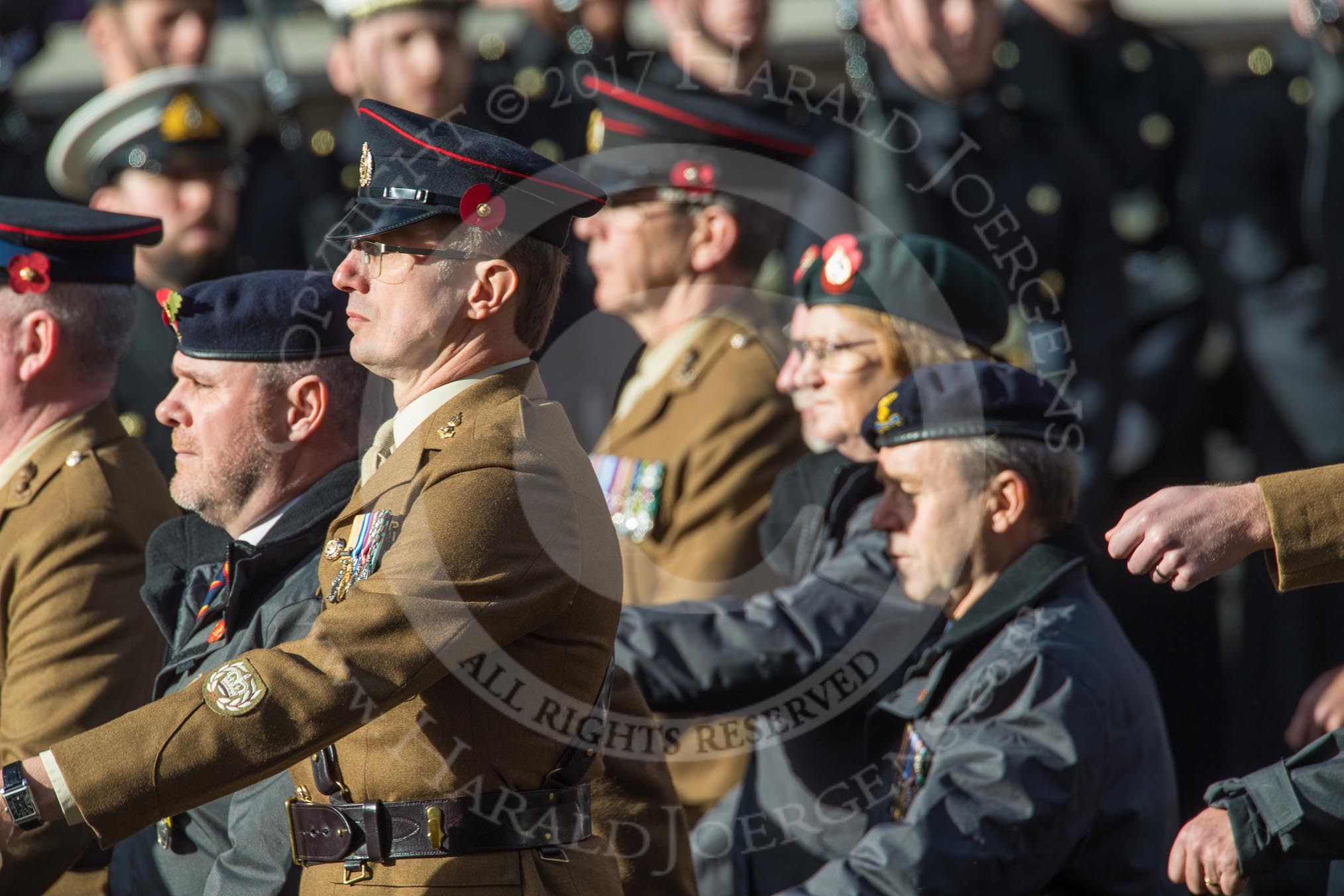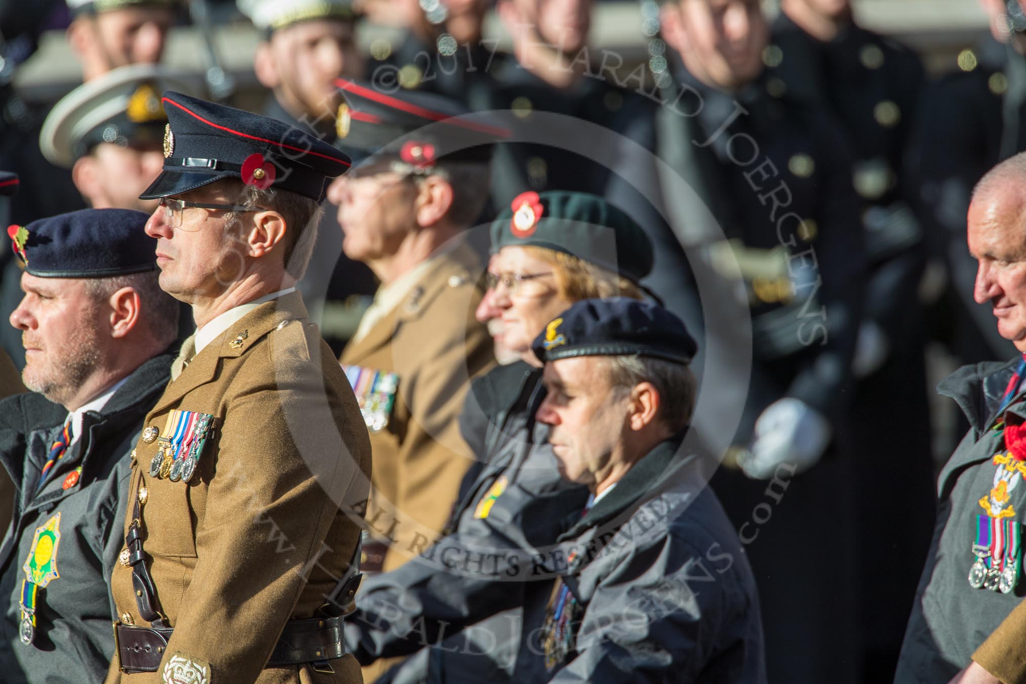 The Cheshire and North Wales Volunteer Decoration and Long Service Medallist’s Association (Group F29, 24 members) during the Royal British Legion March Past on Remembrance Sunday at the Cenotaph, Whitehall, Westminster, London, 11 November 2018, 11:54.