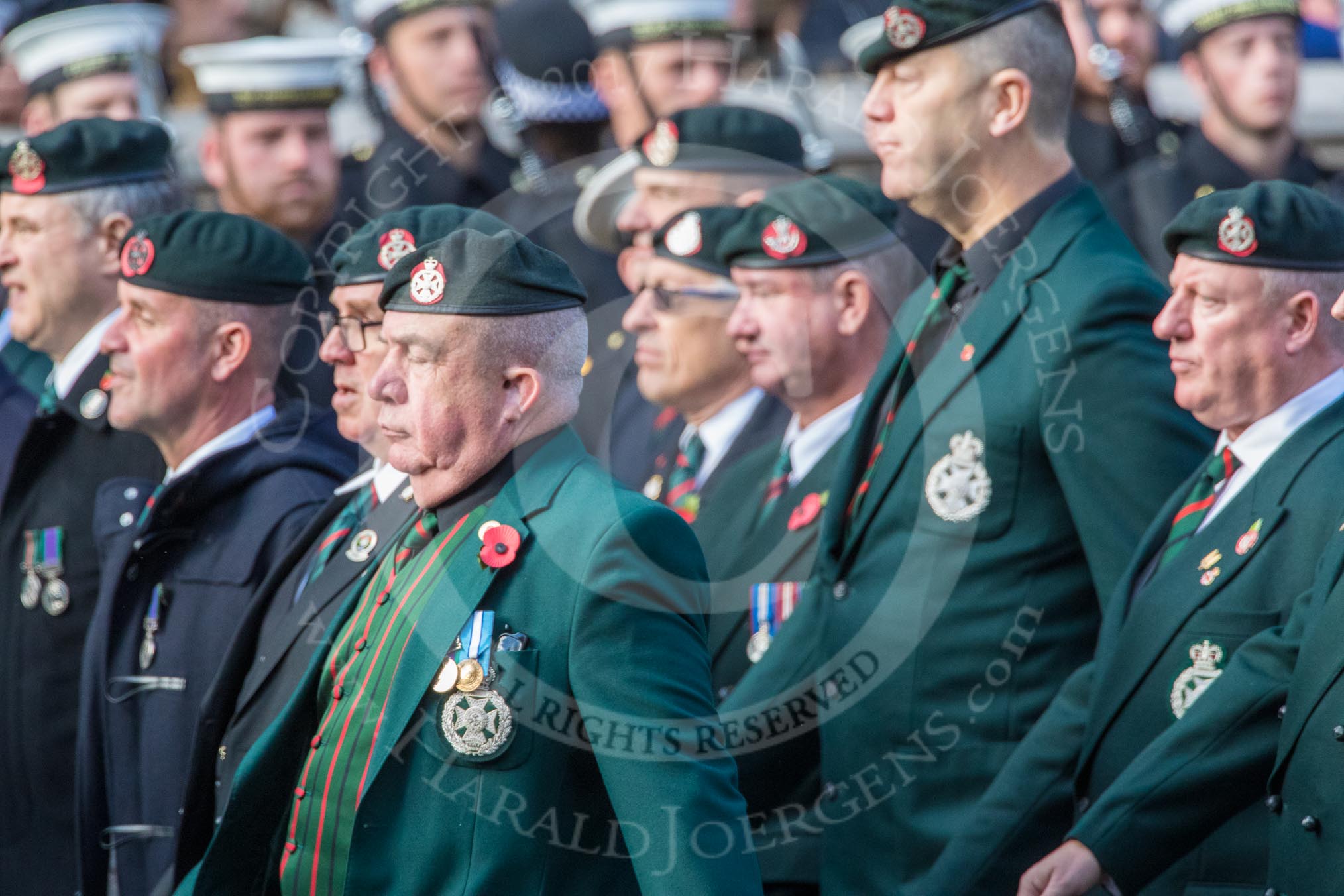 Royal Green Jackets (Group A2, 153 members) during the Royal British Legion March Past on Remembrance Sunday at the Cenotaph, Whitehall, Westminster, London, 11 November 2018, 11:55.