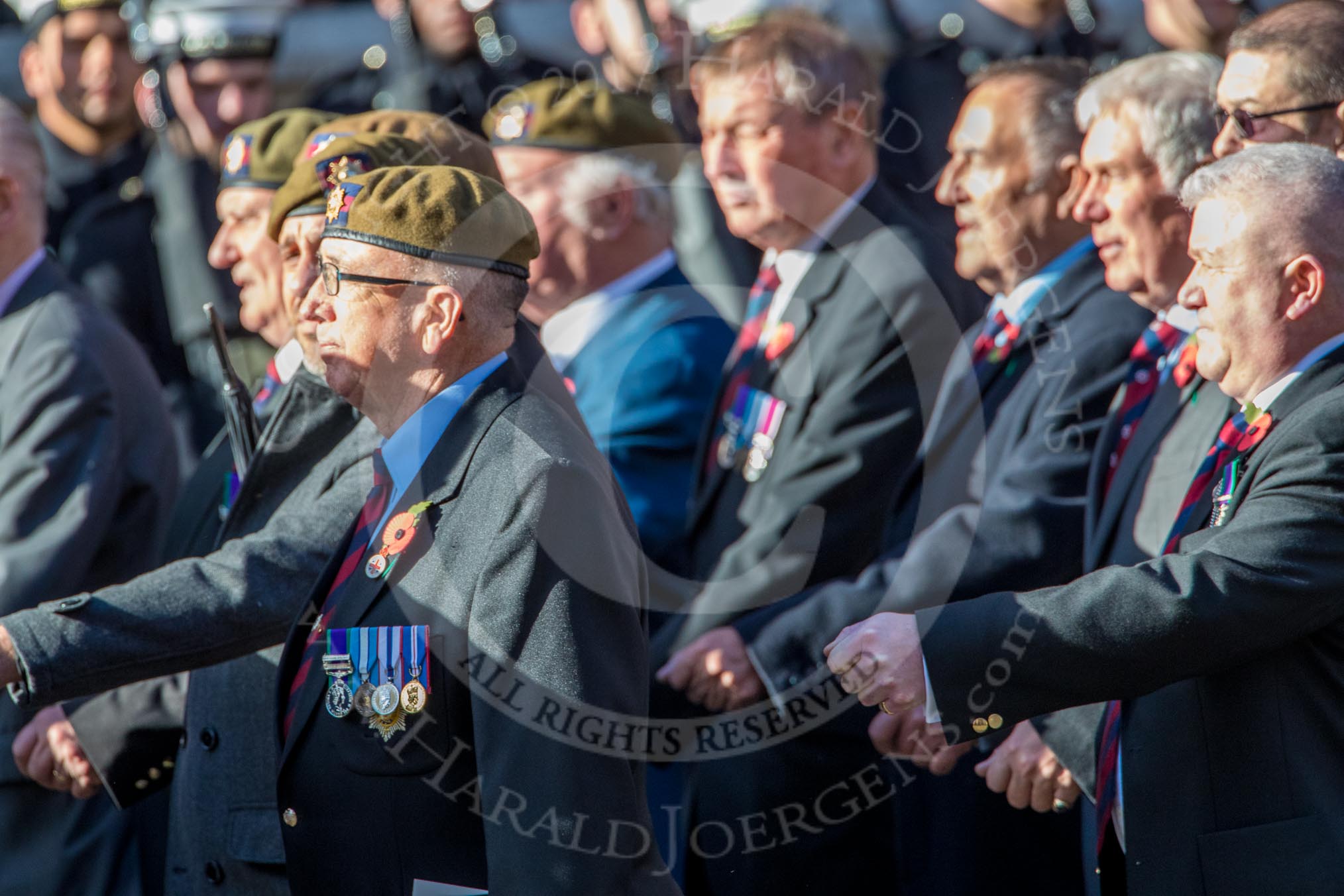 Coldstream Guards Association (Group A18, 30 members) during the Royal British Legion March Past on Remembrance Sunday at the Cenotaph, Whitehall, Westminster, London, 11 November 2018, 11:59