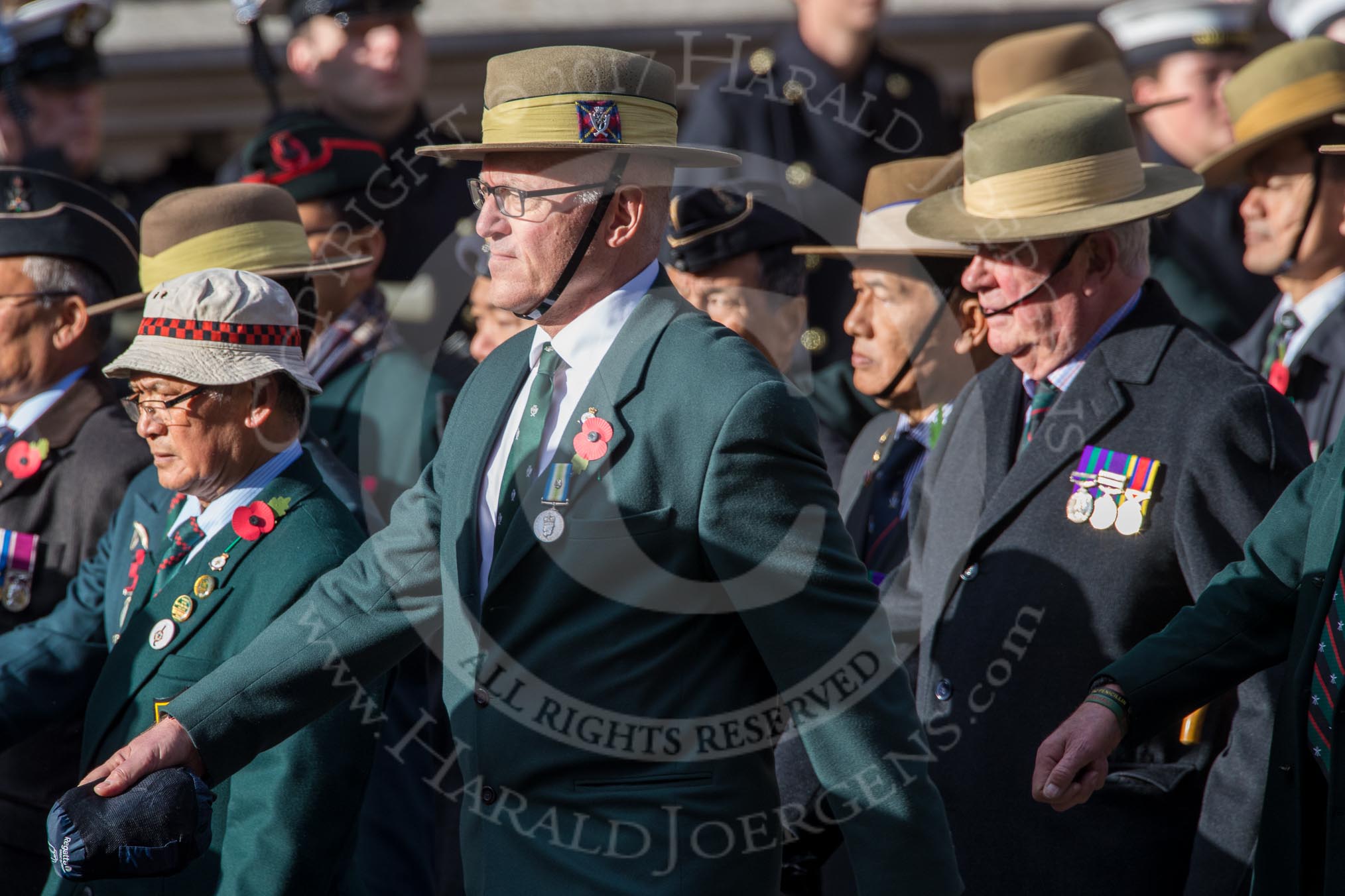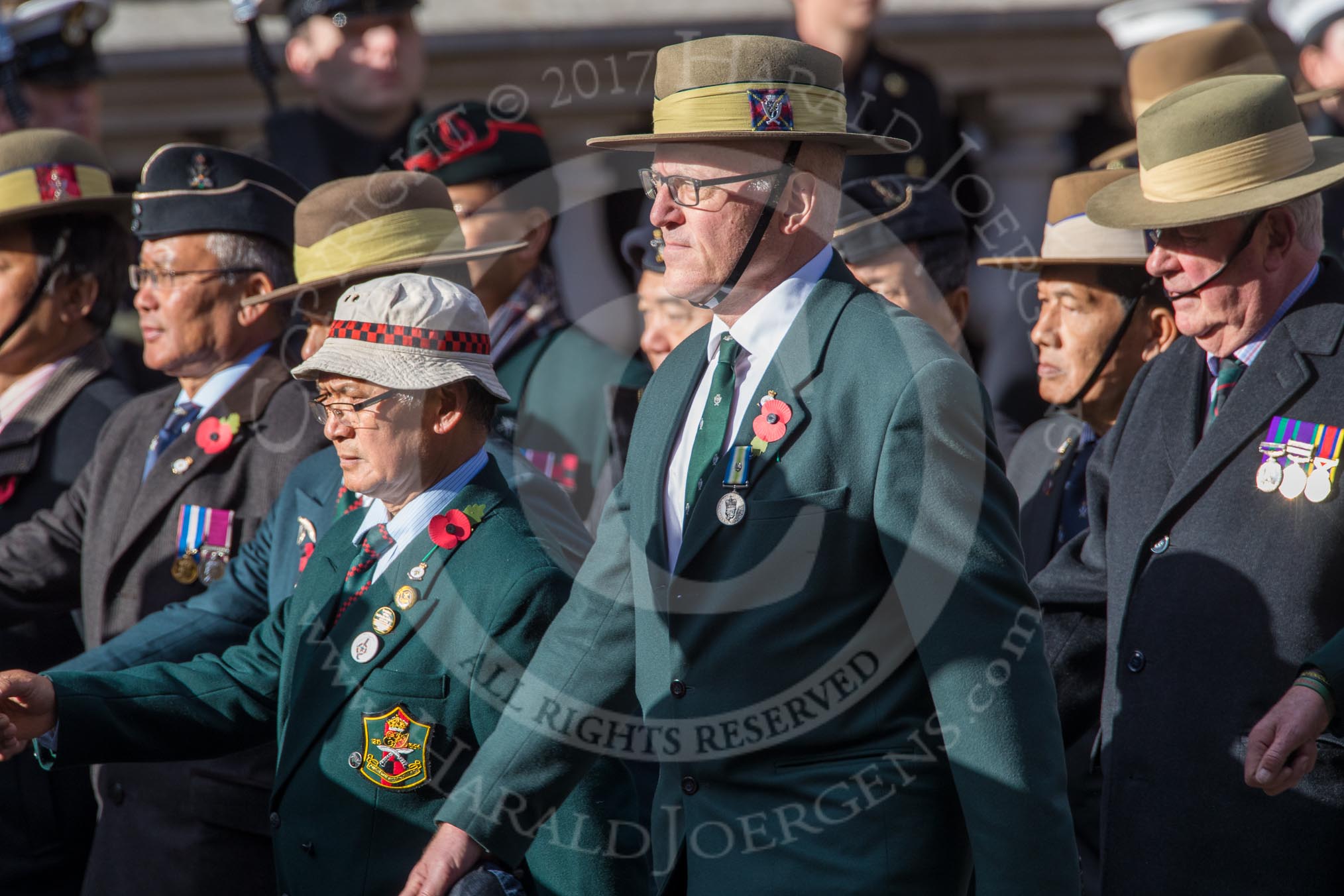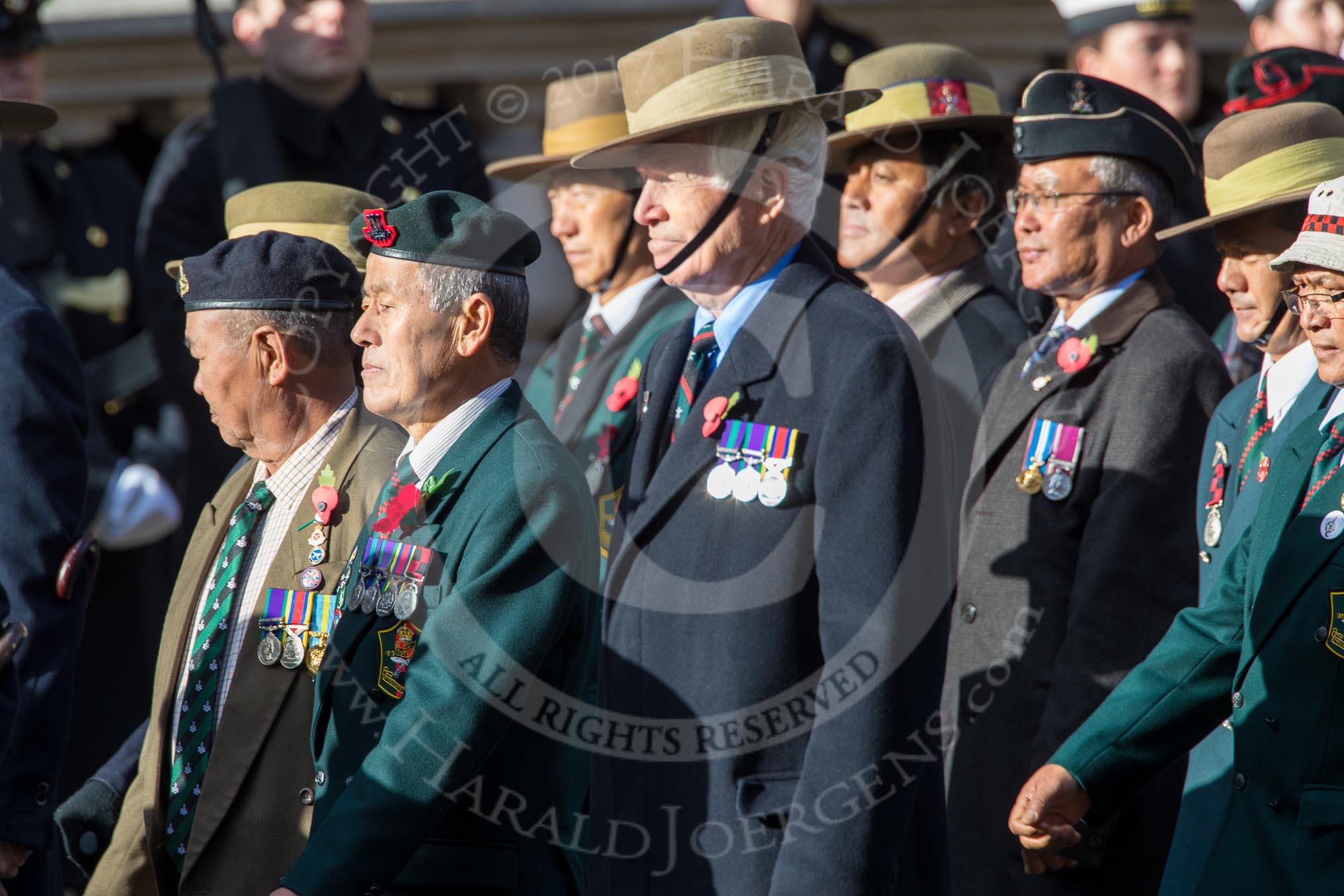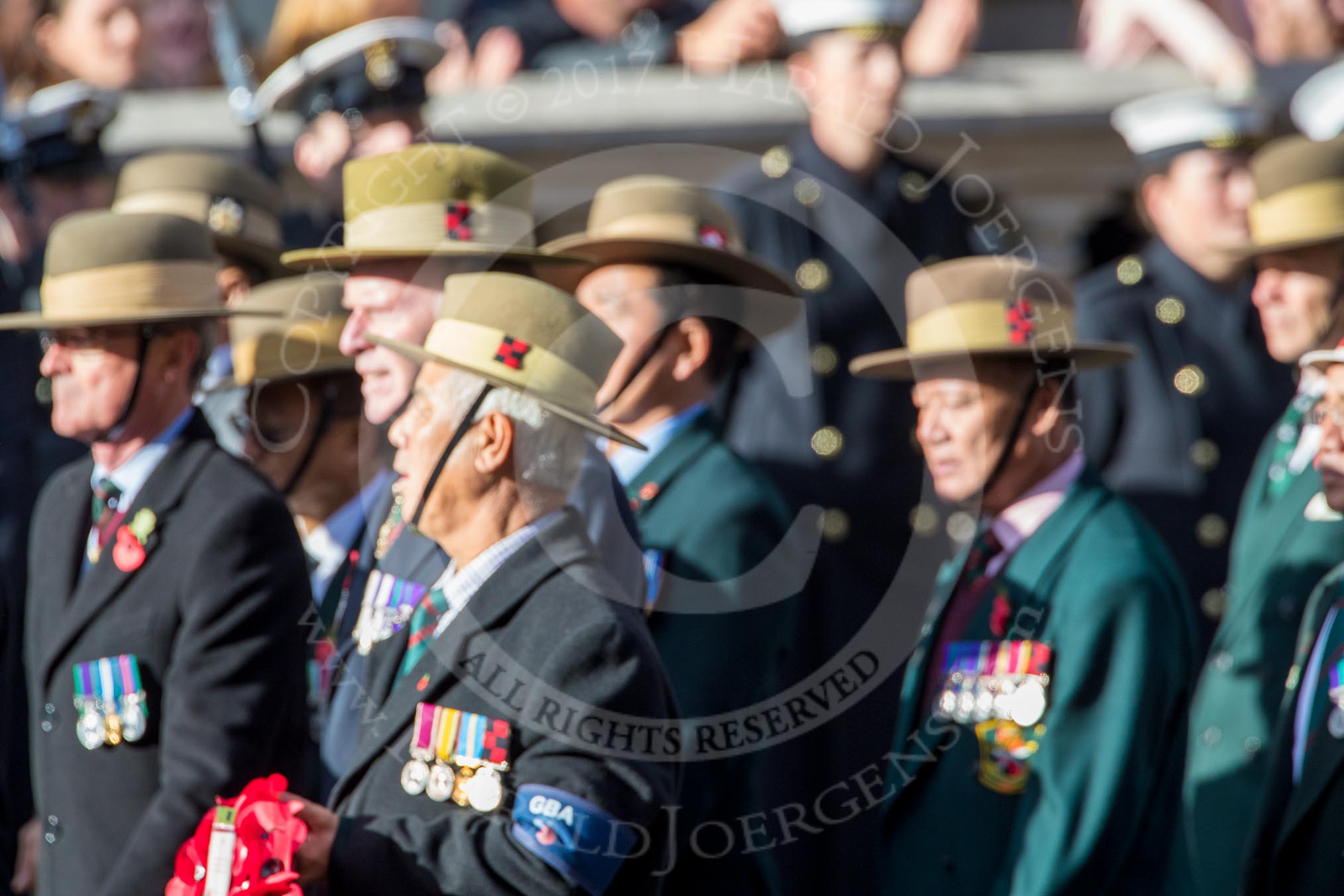 Gurkha Brigade Association (Group A25, 80 members) during the Royal British Legion March Past on Remembrance Sunday at the Cenotaph, Whitehall, Westminster, London, 11 November 2018, 12:00.