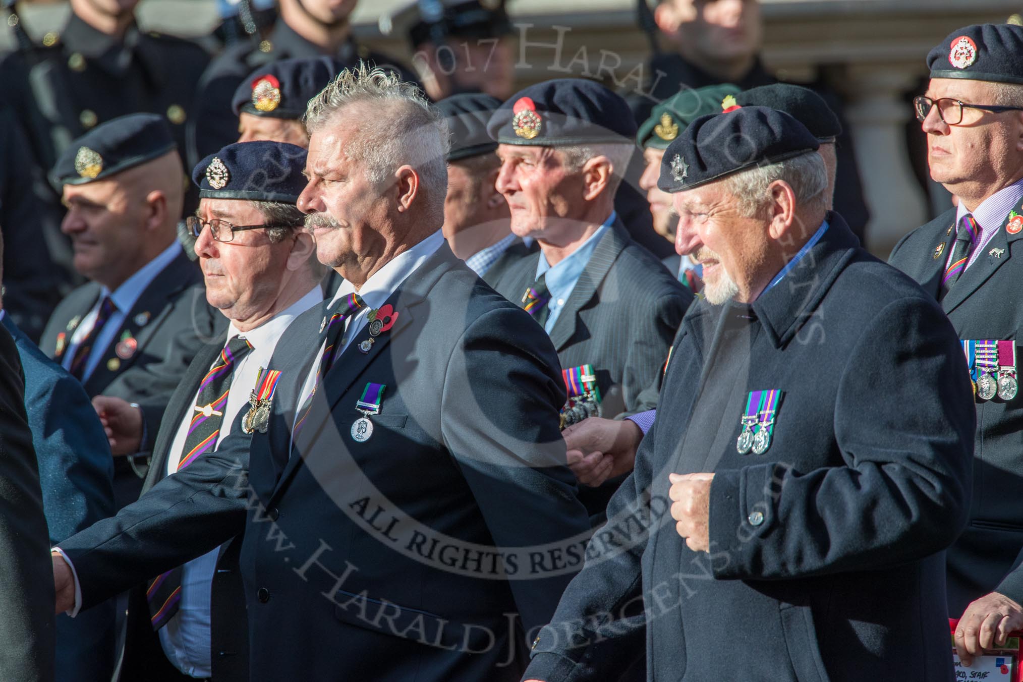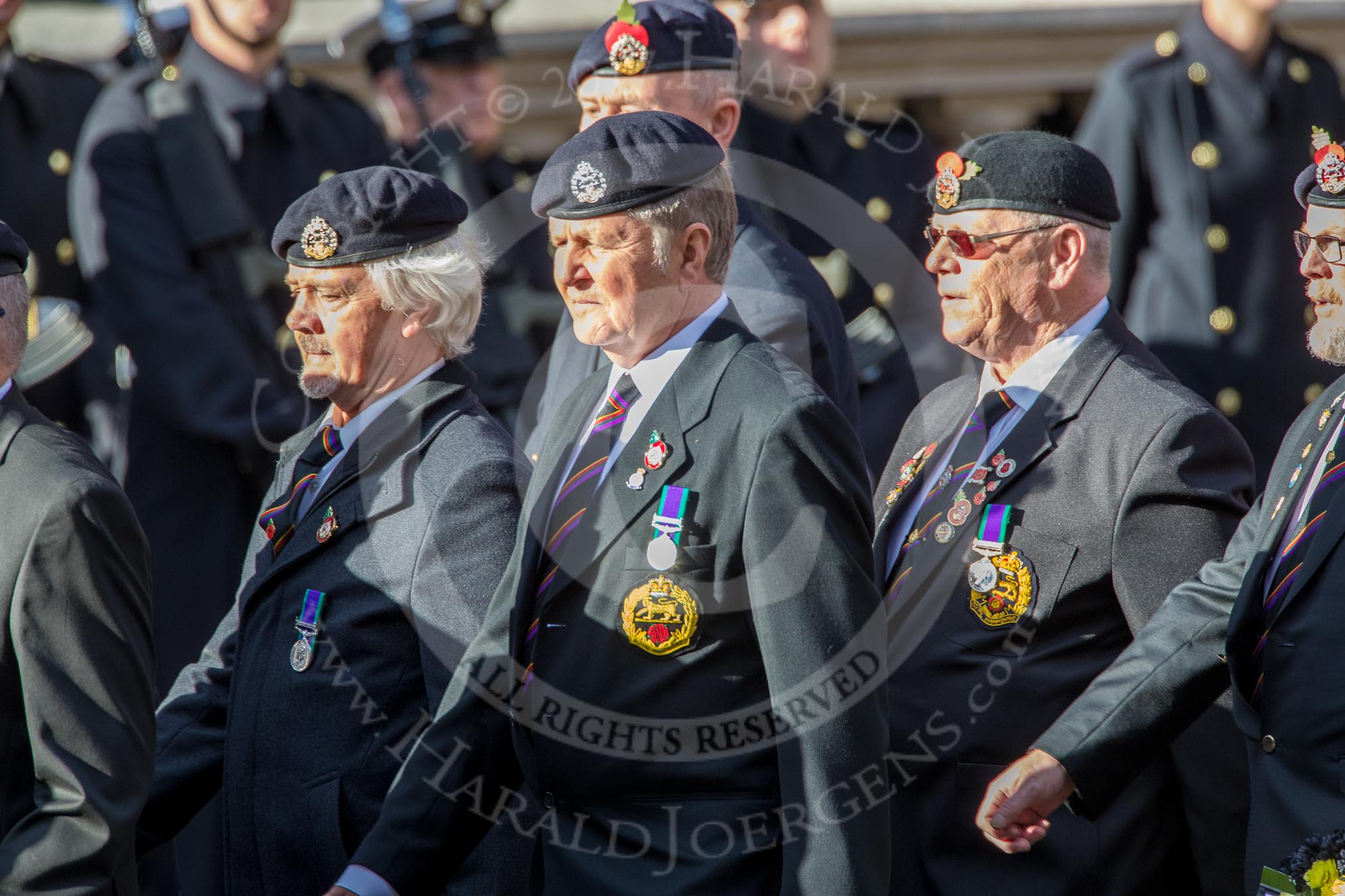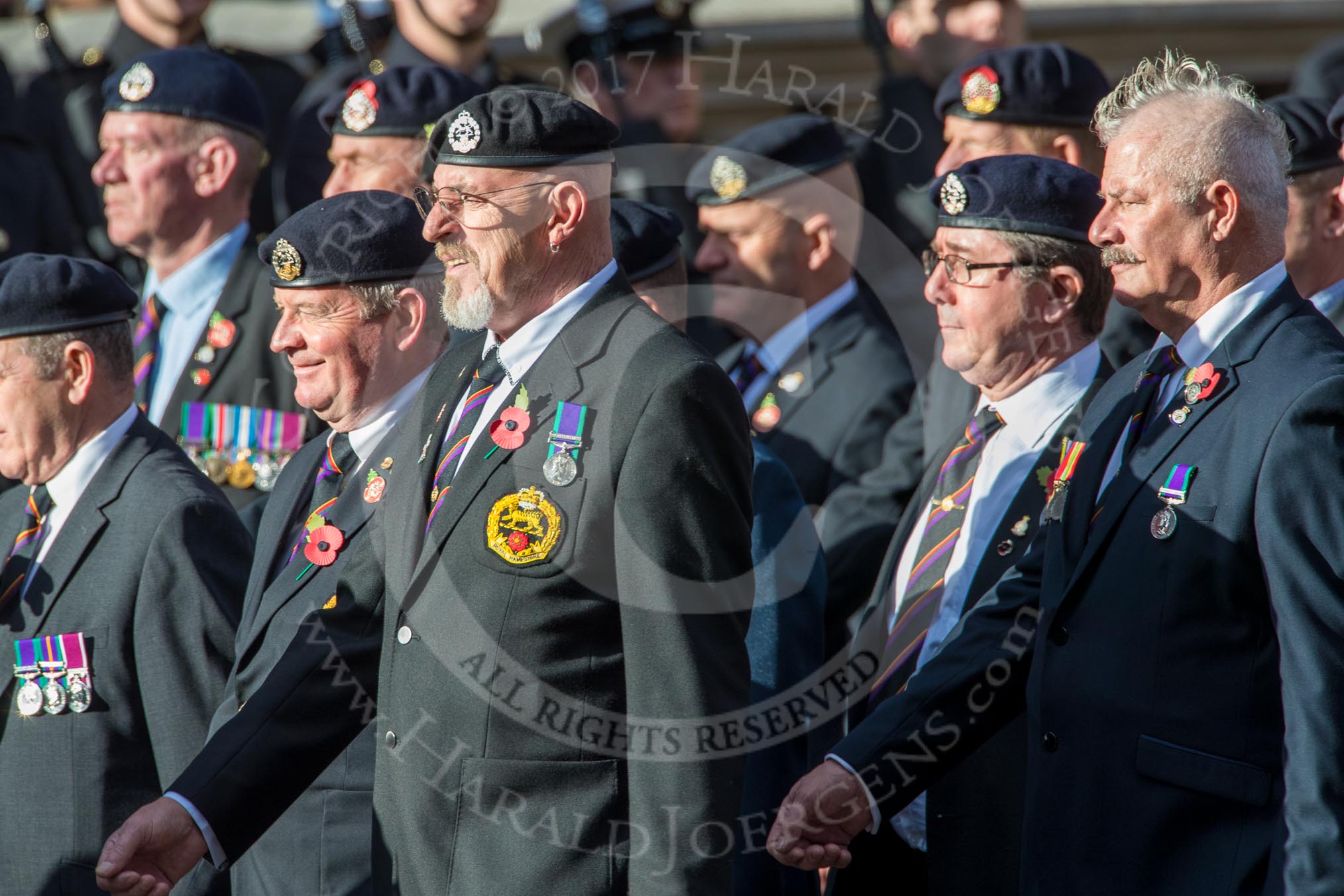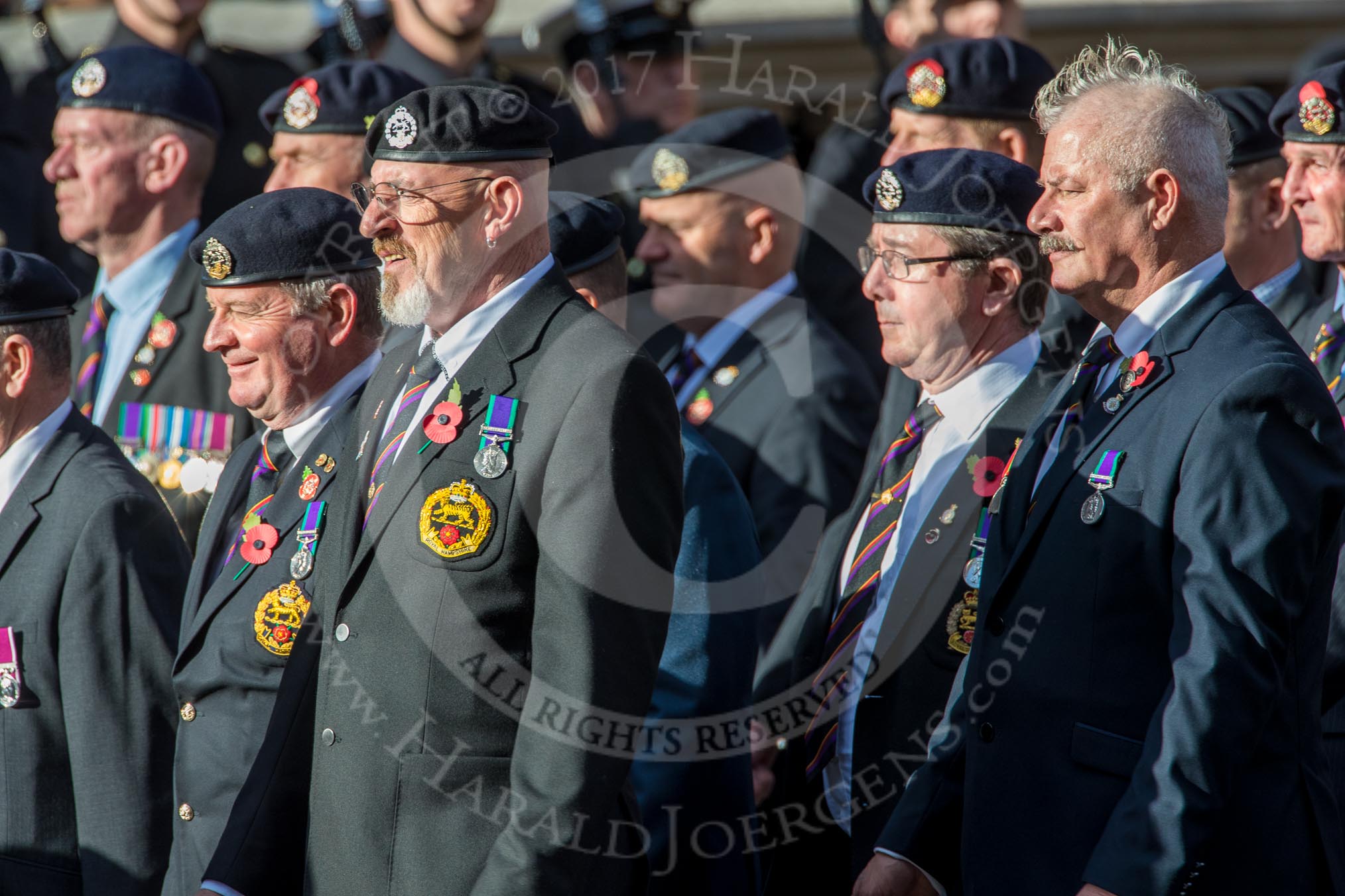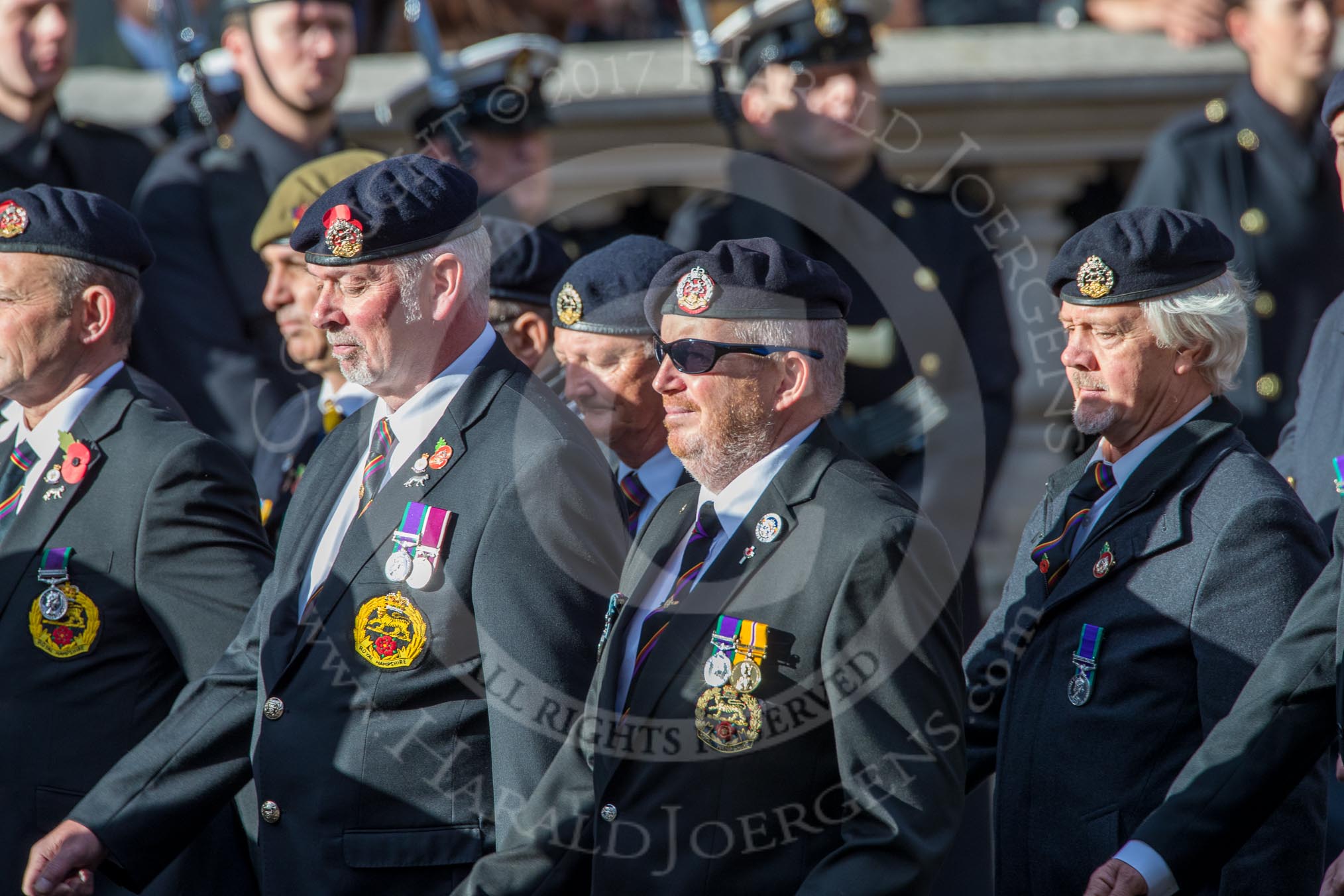 The Royal Hampshire Regimental Association (Group A27, 51 members) during the Royal British Legion March Past on Remembrance Sunday at the Cenotaph, Whitehall, Westminster, London, 11 November 2018, 12:01.