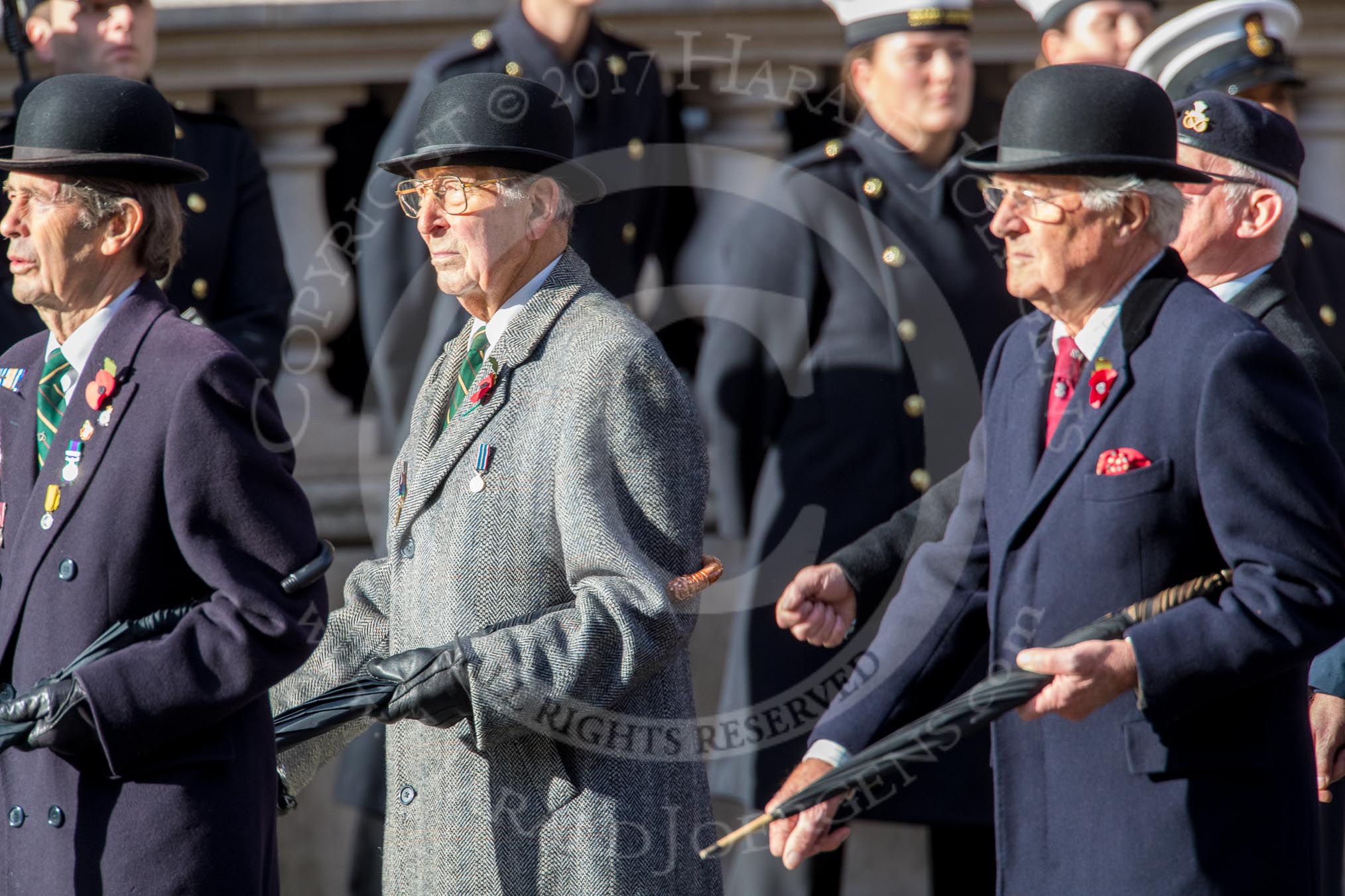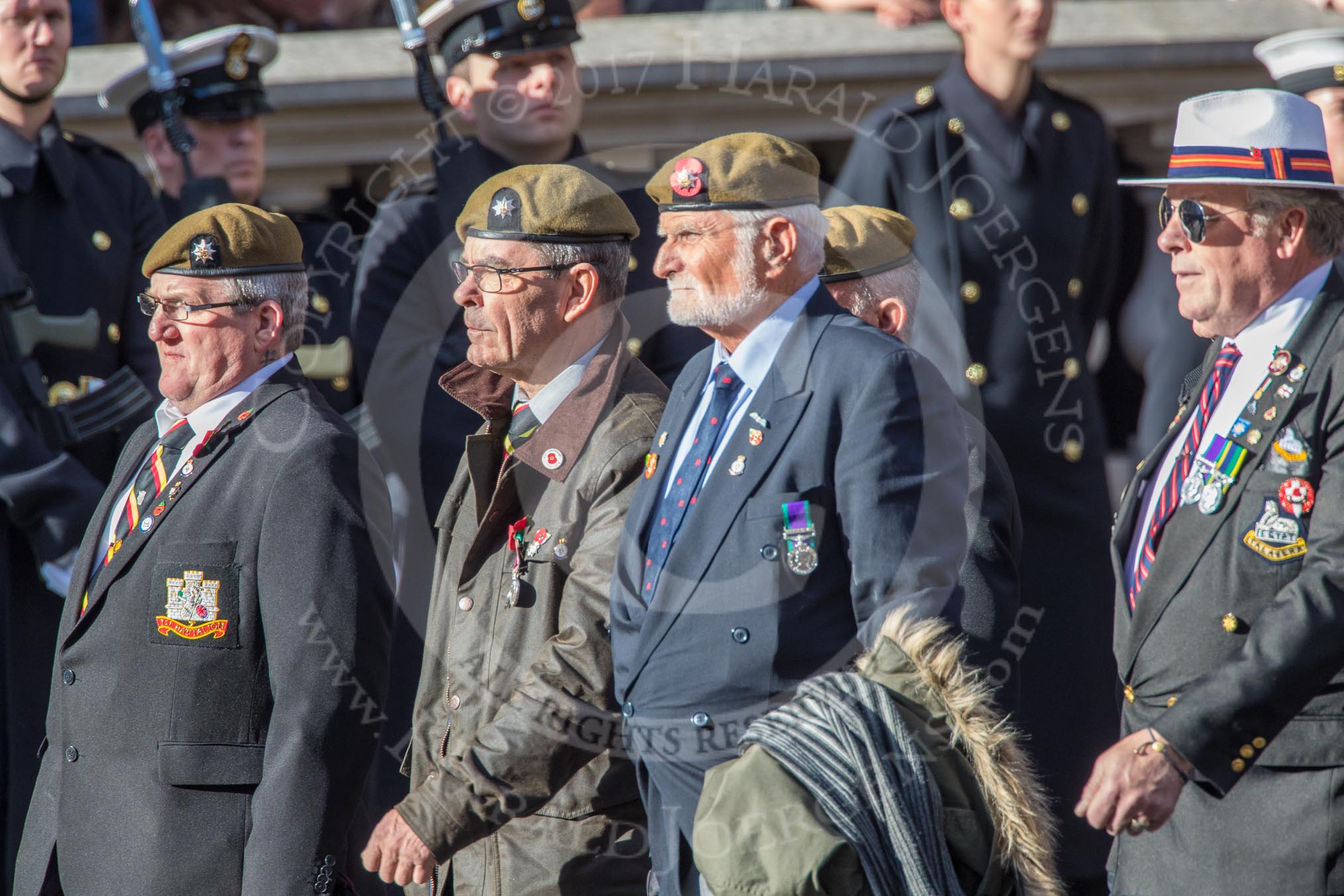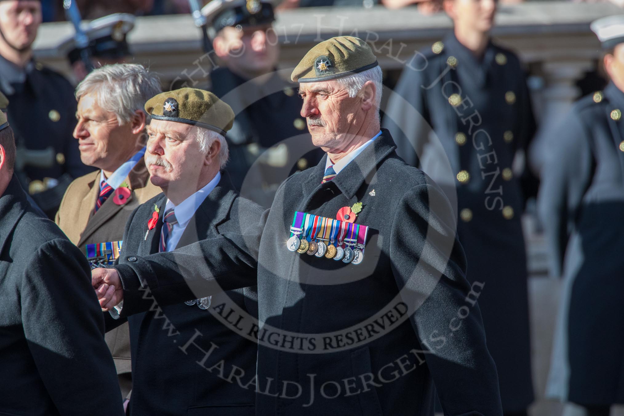 The Royal Hampshire Regimental Association (Group A27, 51 members) during the Royal British Legion March Past on Remembrance Sunday at the Cenotaph, Whitehall, Westminster, London, 11 November 2018, 12:01.