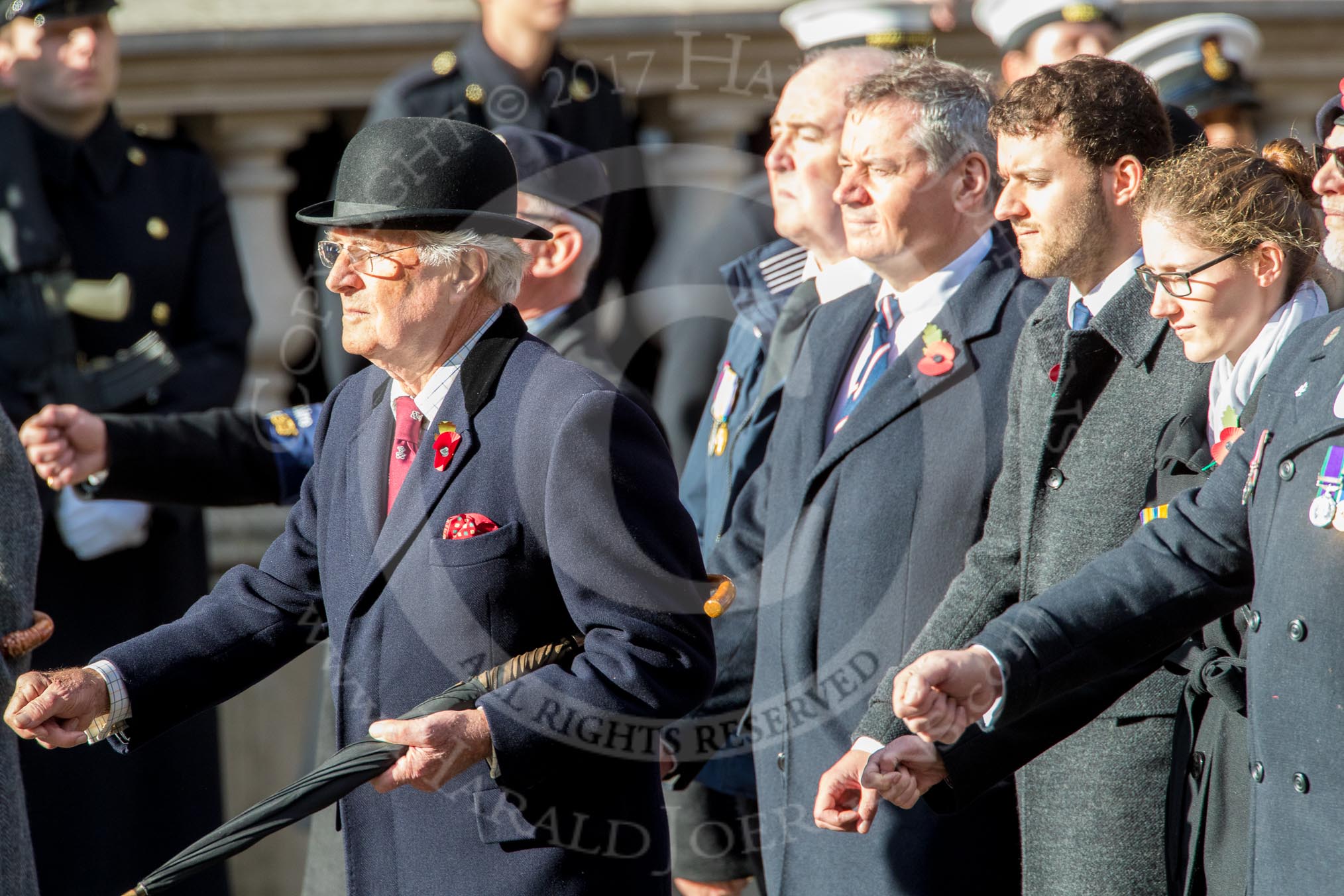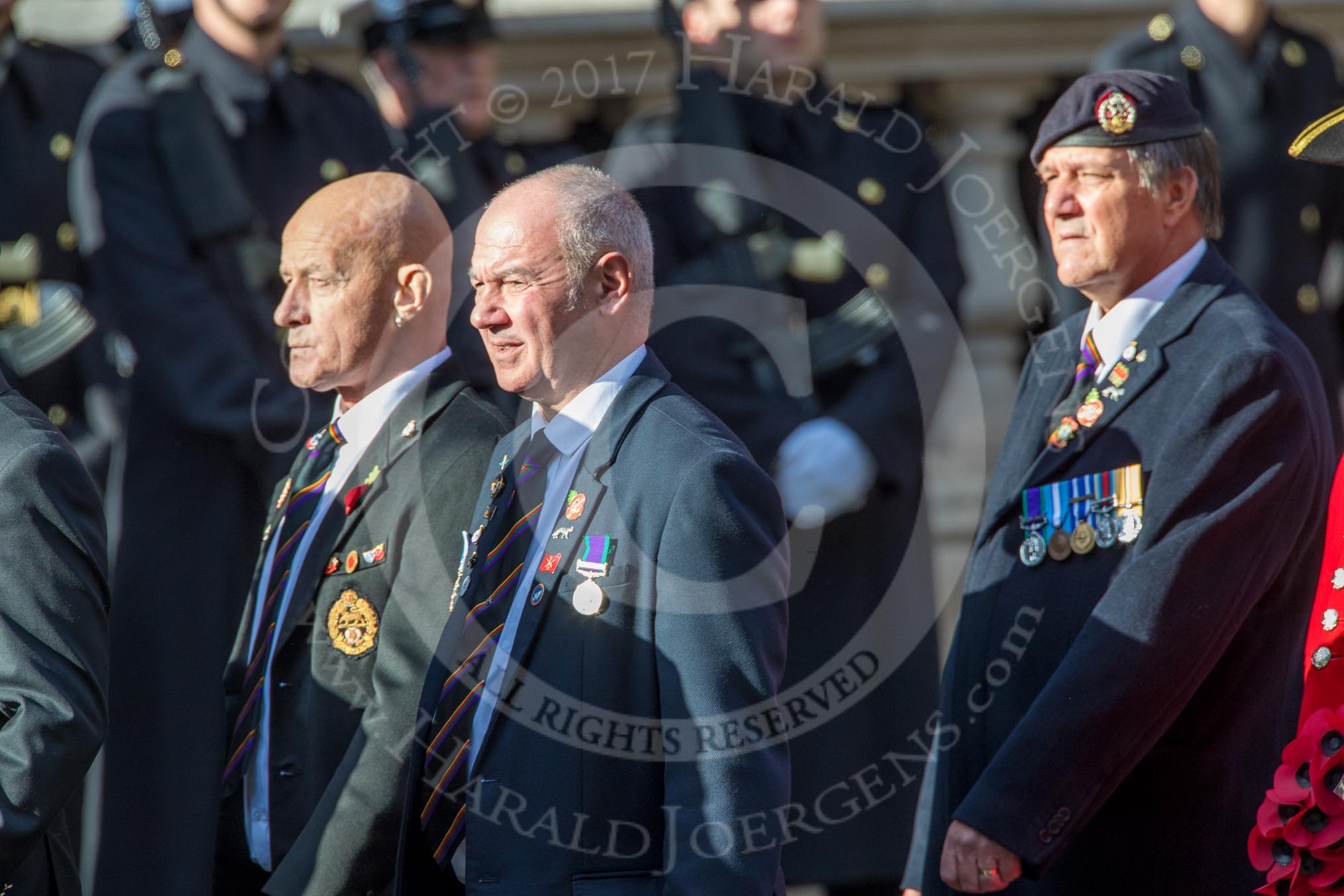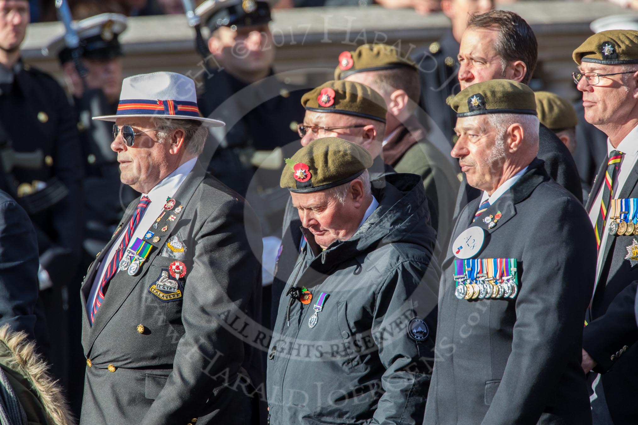 The Royal Hampshire Regimental Association (Group A27, 51 members) during the Royal British Legion March Past on Remembrance Sunday at the Cenotaph, Whitehall, Westminster, London, 11 November 2018, 12:01.
