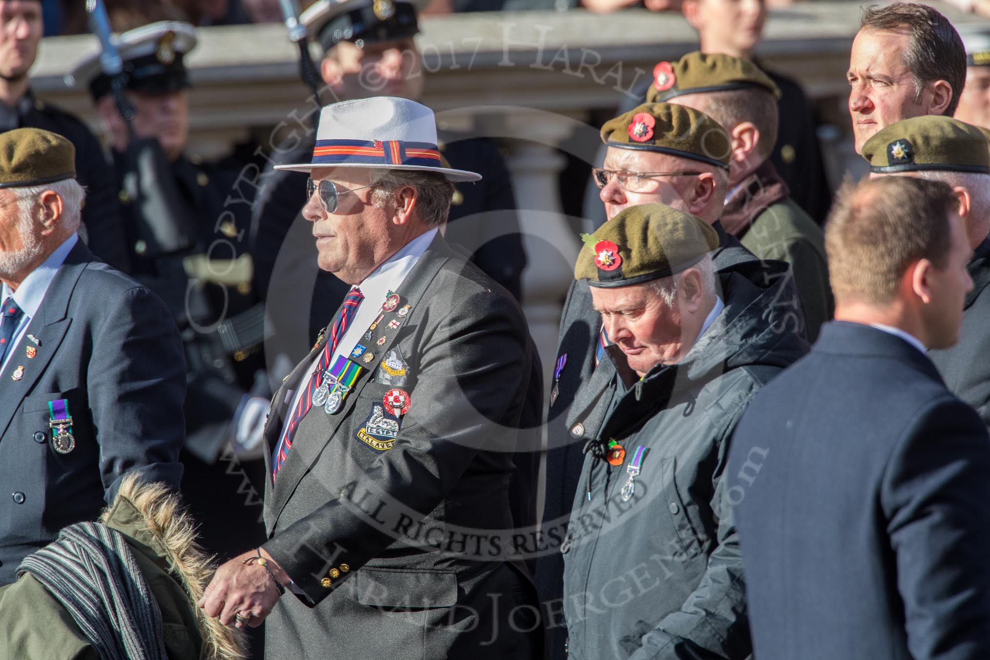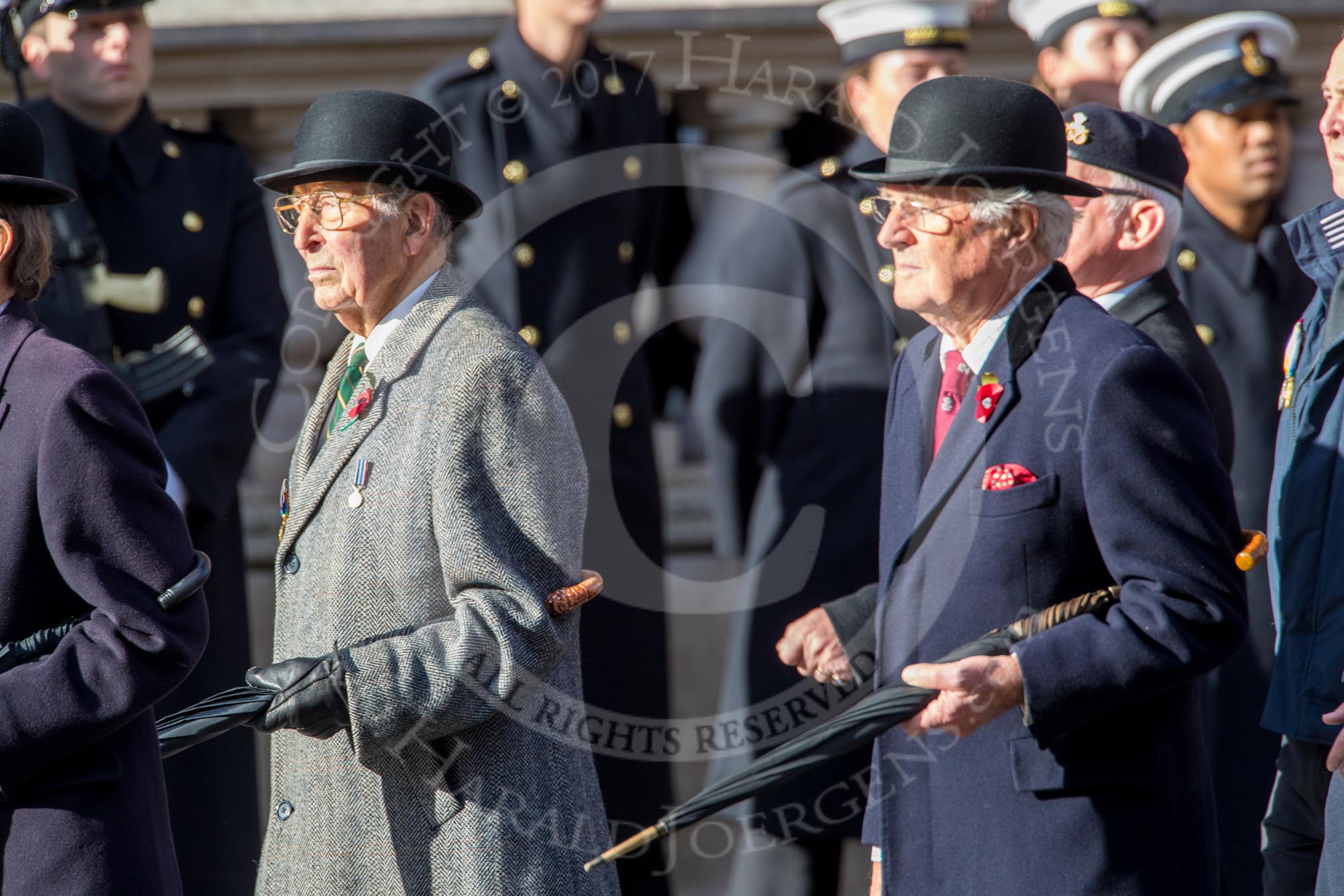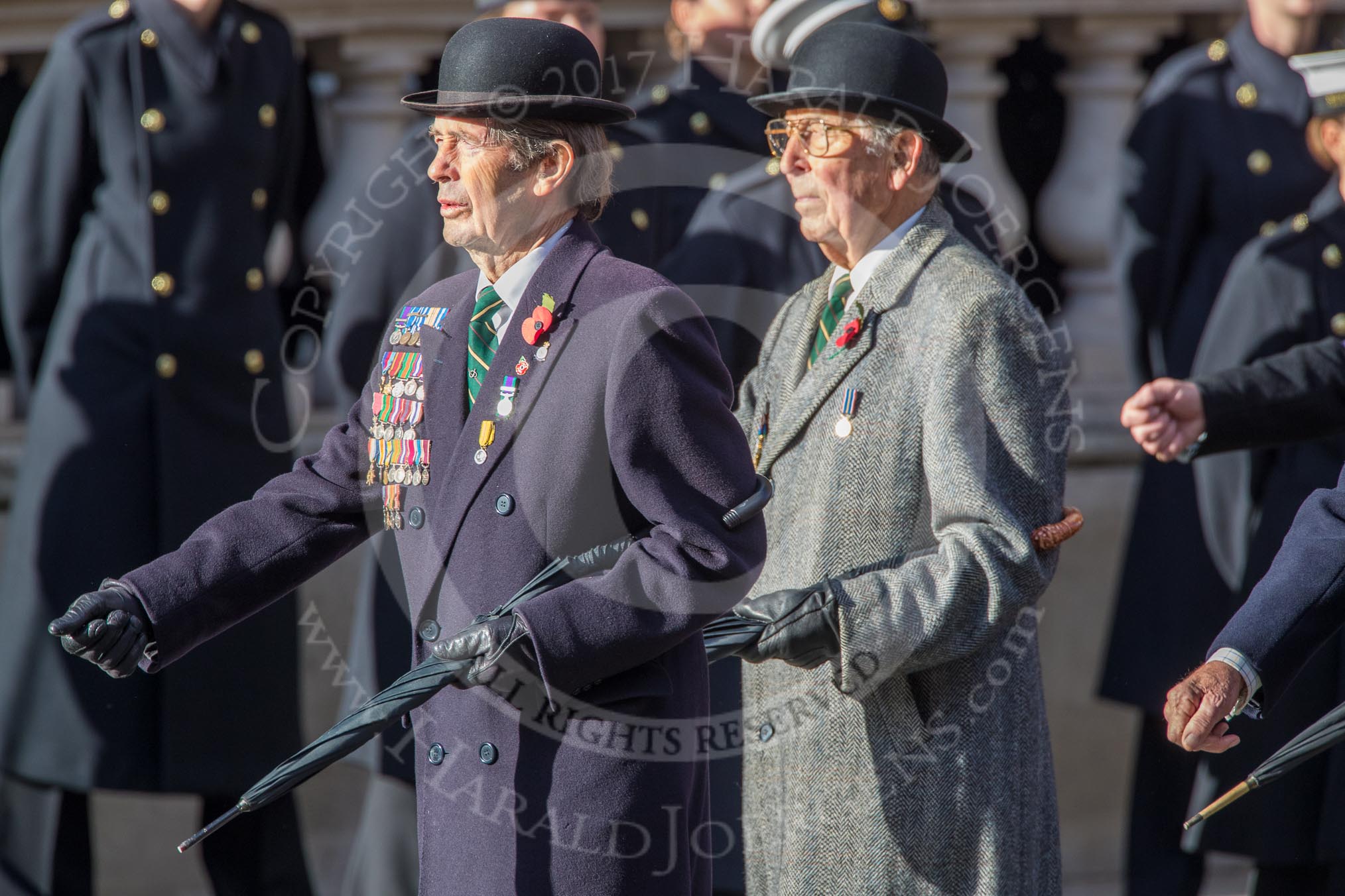 The Staffordshire Regiment (Group A29, 54 members) during the Royal British Legion March Past on Remembrance Sunday at the Cenotaph, Whitehall, Westminster, London, 11 November 2018, 12:01.
