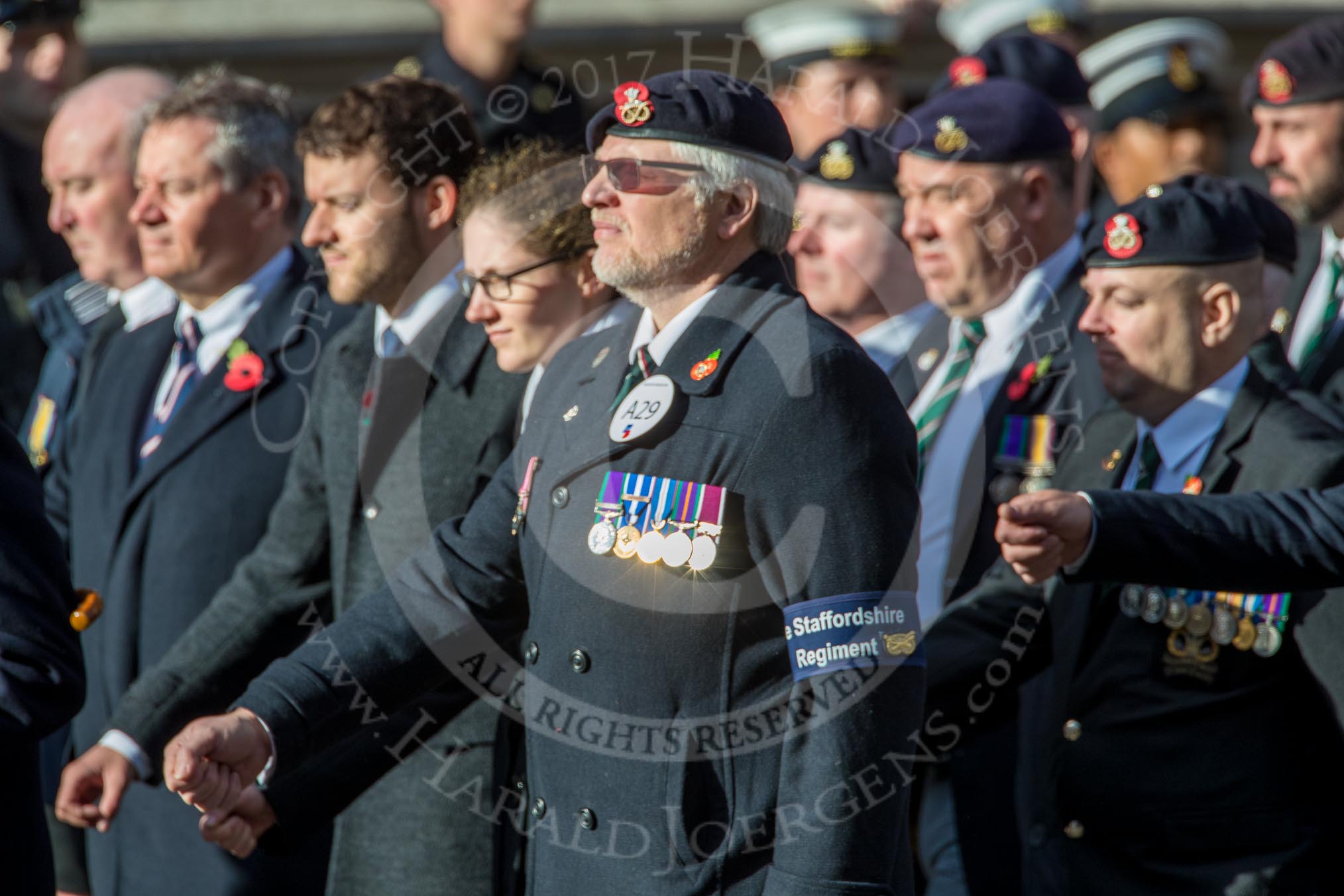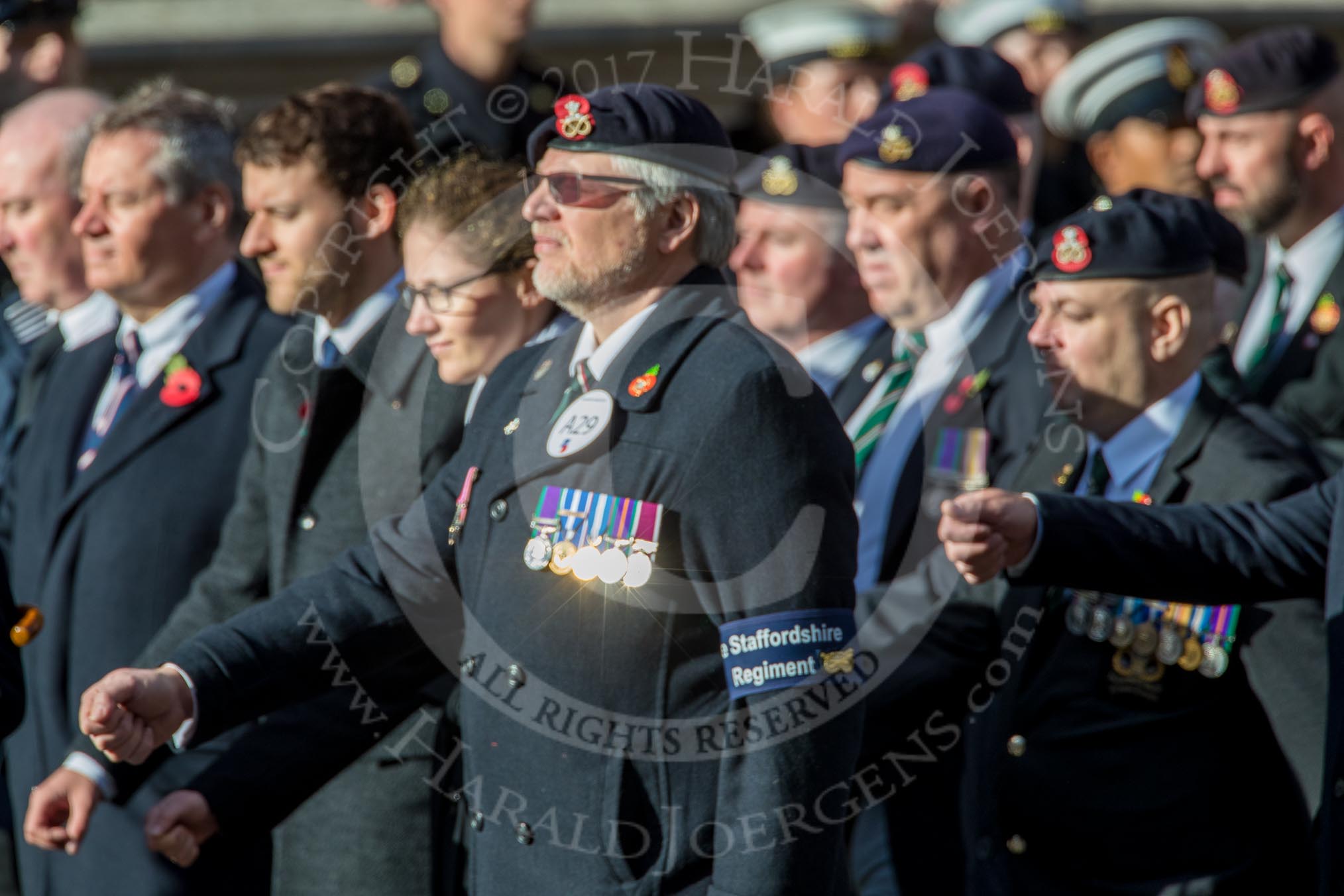 The Staffordshire Regiment (Group A29, 54 members) during the Royal British Legion March Past on Remembrance Sunday at the Cenotaph, Whitehall, Westminster, London, 11 November 2018, 12:01.