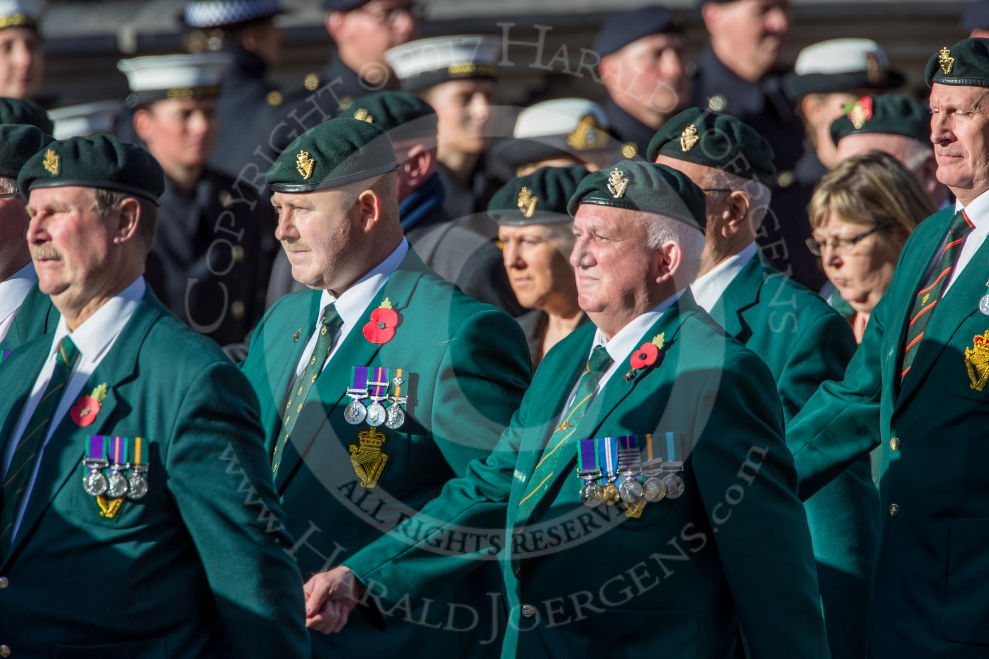 The Regimental Association of The Ulster Defence Regiment (Group A38, 83 members) during the Royal British Legion March Past on Remembrance Sunday at the Cenotaph, Whitehall, Westminster, London, 11 November 2018, 12:03.