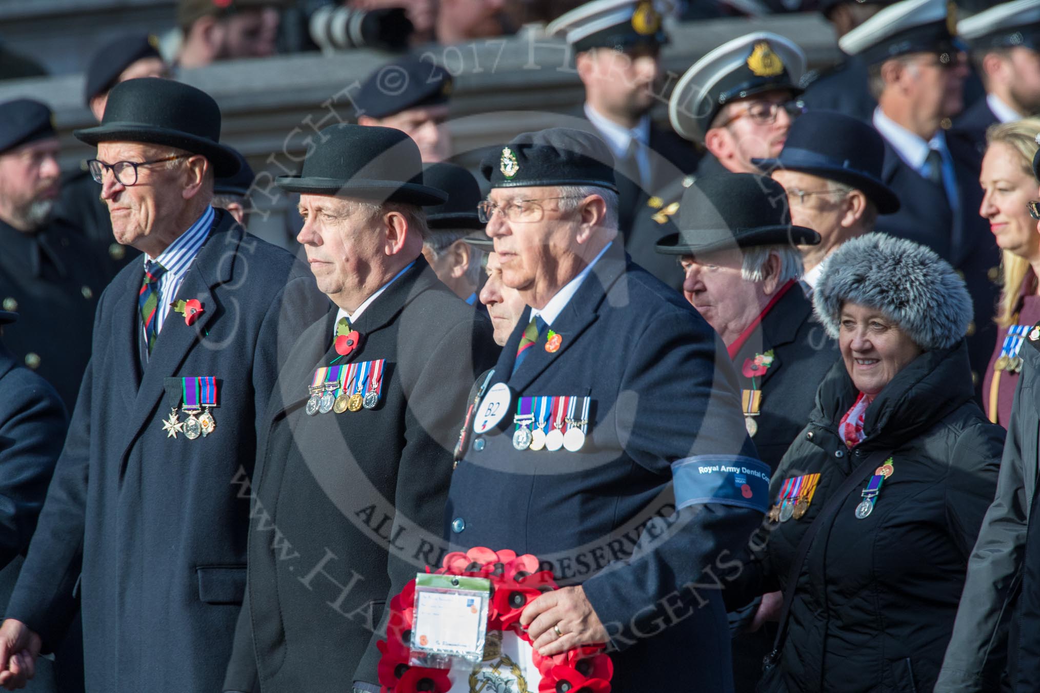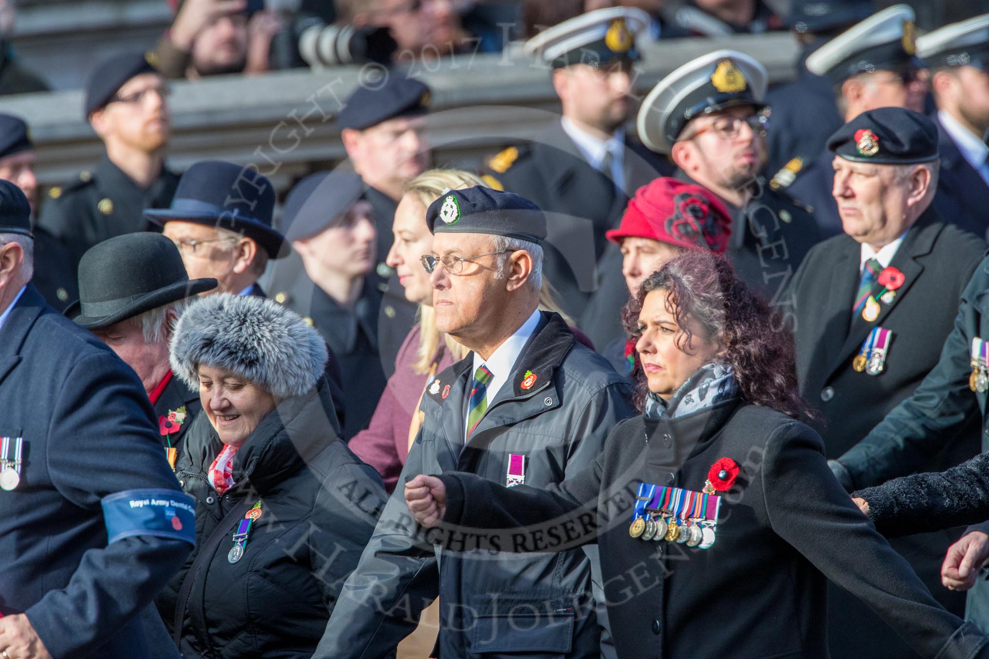 RAVC and RADC Associations (Group B2, 27 members) during the Royal British Legion March Past on Remembrance Sunday at the Cenotaph, Whitehall, Westminster, London, 11 November 2018, 12:05.