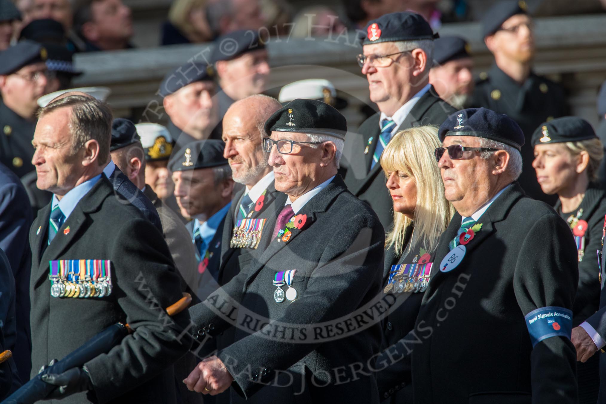 Royal Signals Association (Group B6, 49 members) during the Royal British Legion March Past on Remembrance Sunday at the Cenotaph, Whitehall, Westminster, London, 11 November 2018, 12:06.