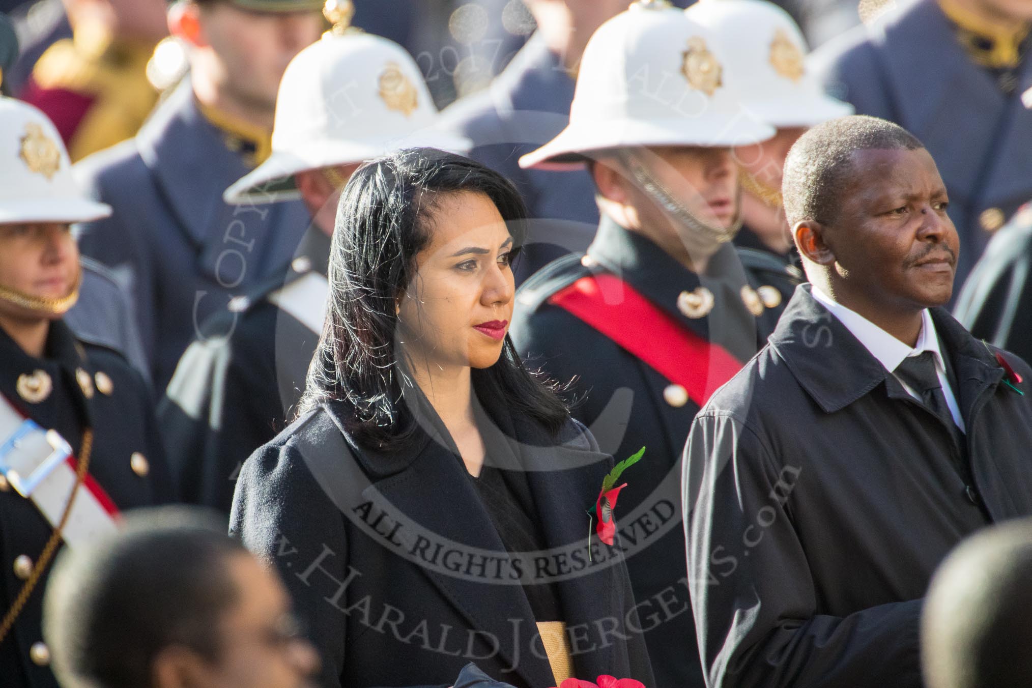 The High Commissioner of Tonga, Titilupe Fanetupouvava'u Tu'ivakano, and The High Commissioner of Eswatini during Remembrance Sunday Cenotaph Ceremony 2018 at Horse Guards Parade, Westminster, London, 11 November 2018, 11:03.